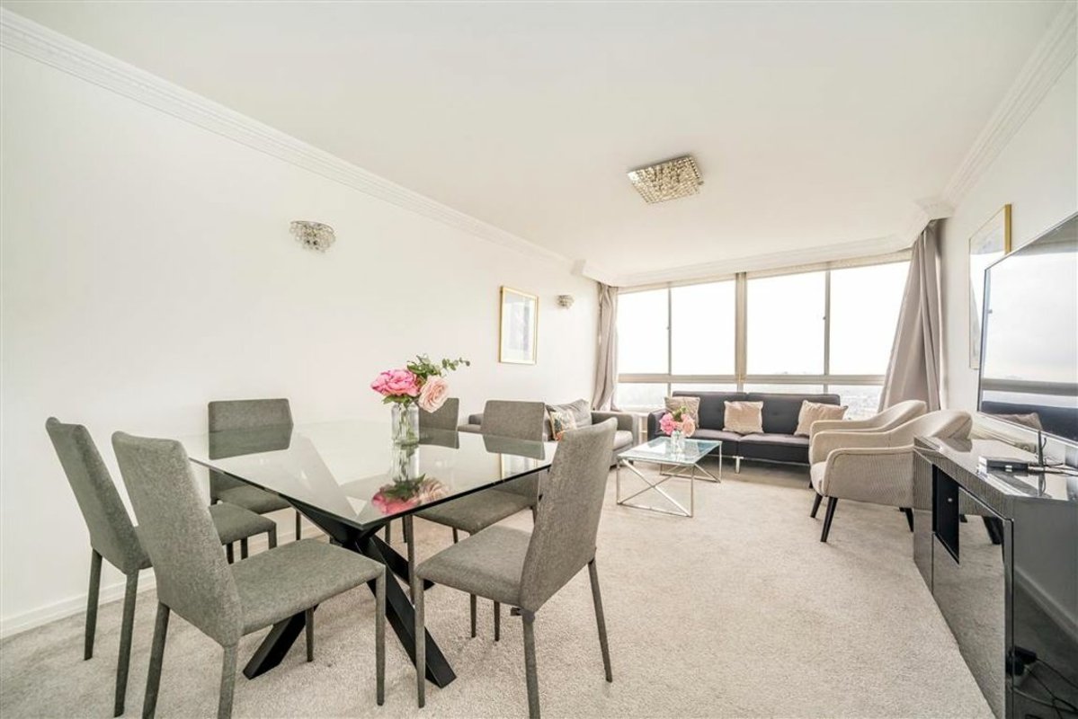 Three double bedroom apartment on the 20th floor in a portered block in Hyde Park Estate. With spectacular views across Hyde Park and the London skyline.