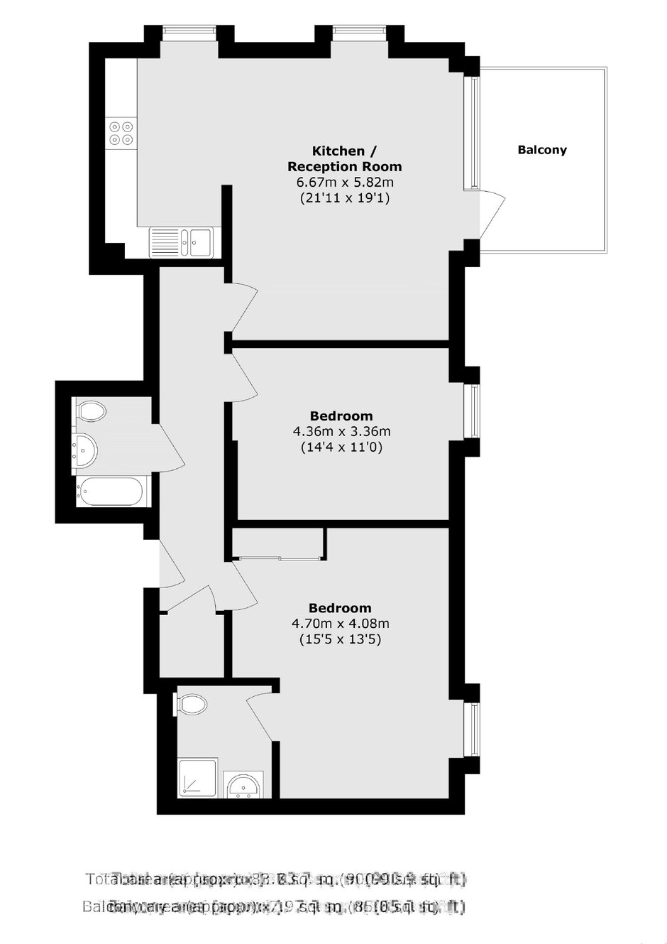 A modern and bright two bedroom, two-bathroom apartment featuring an open-plan kitchen and dining area providing access to a private balcony with direct views of the River.The property boasts a wooden flooring in the reception/living room area and a spacious layout.