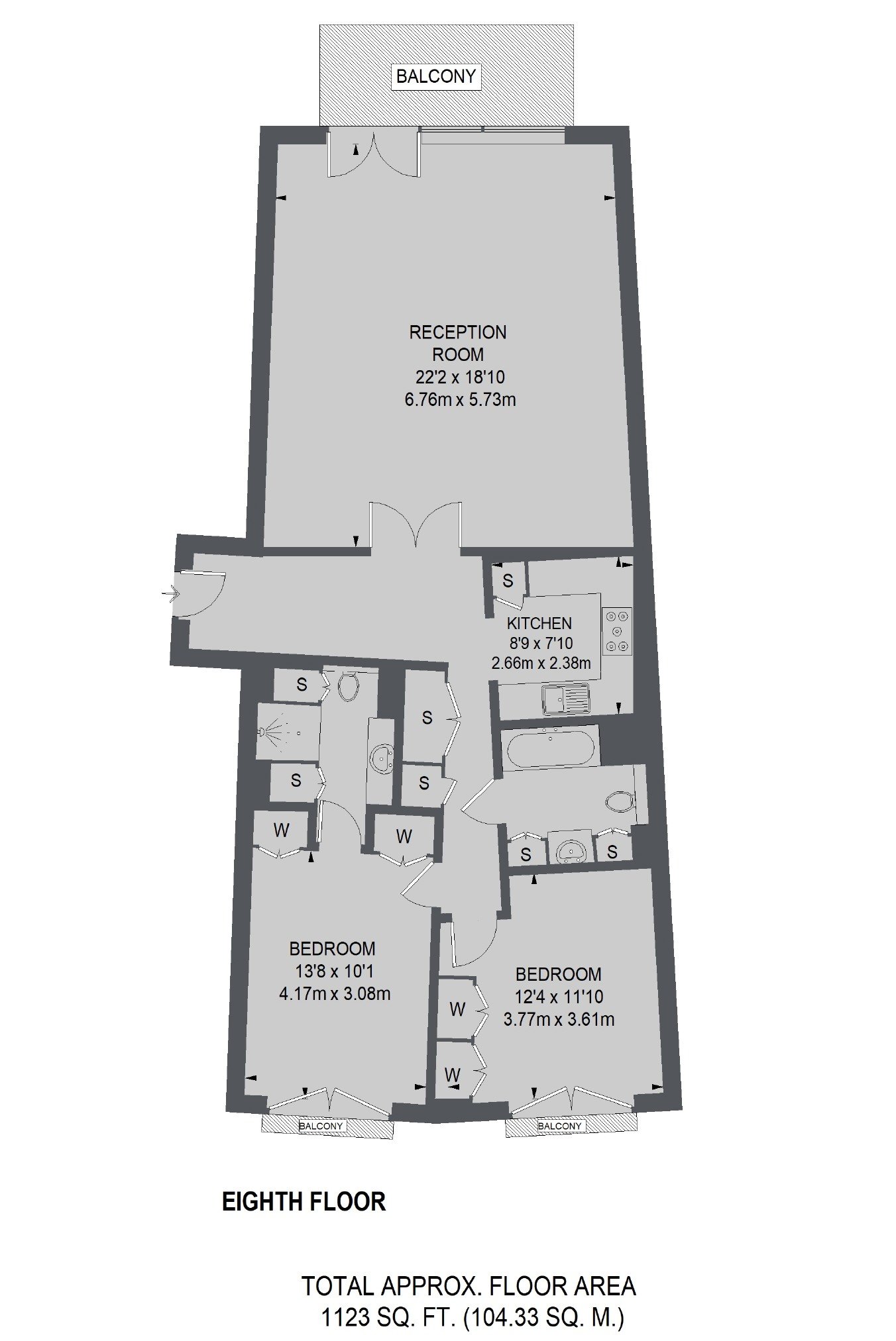 An exceptionally large two bedroom apartment is over 1100 square feet and is located on the eight floor (with lift) of this superior development. This river facing apartment has floor to ceiling windows, wooden flooring and on-site swimming pool and gym.