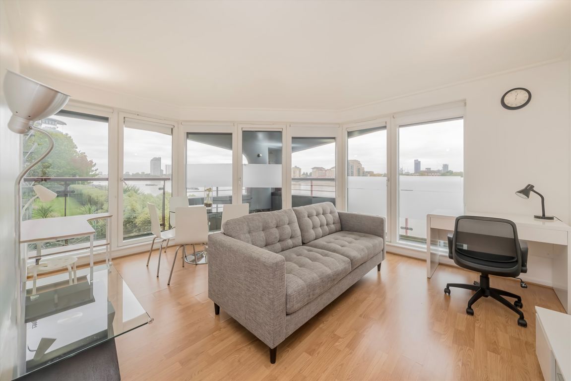 An exceptionally bright two bedroom apartment on the first floor of this sought after development. This spacious apartment has floor to ceiling windows, a private balcony and direct river views.