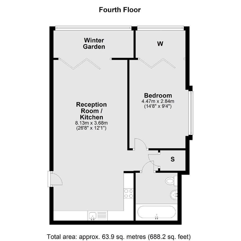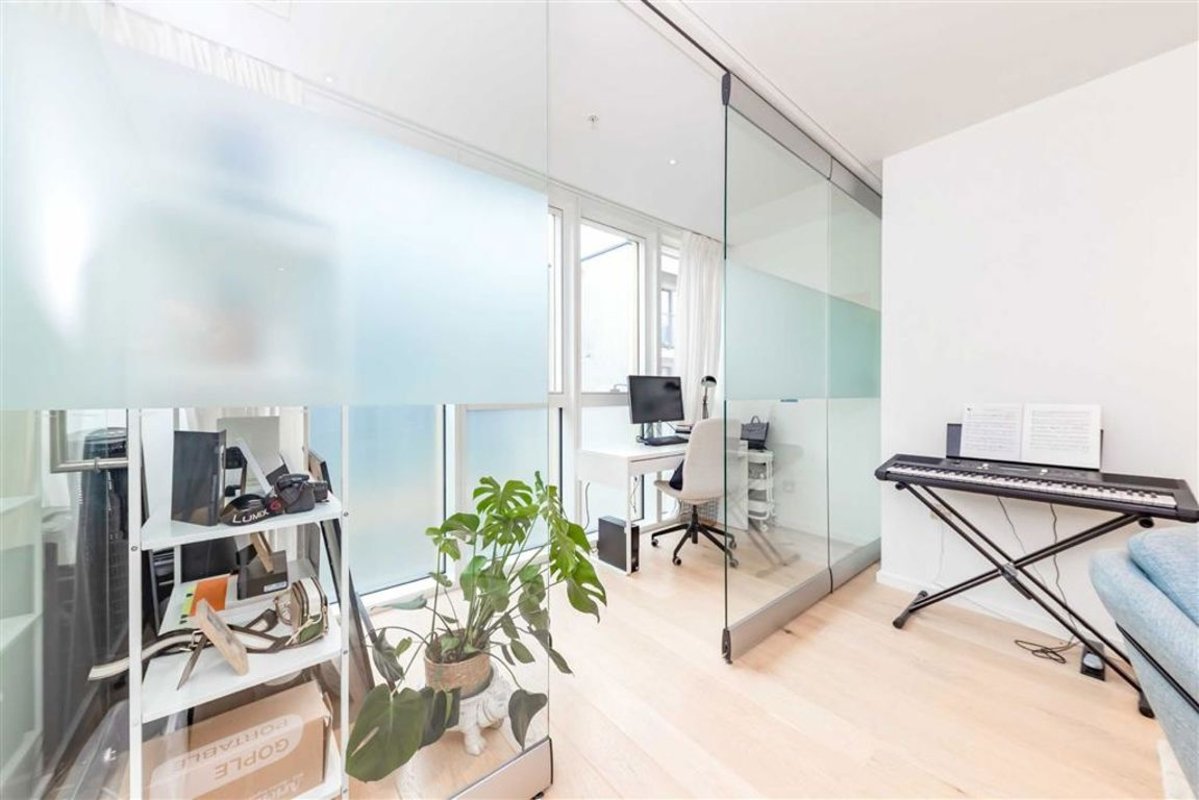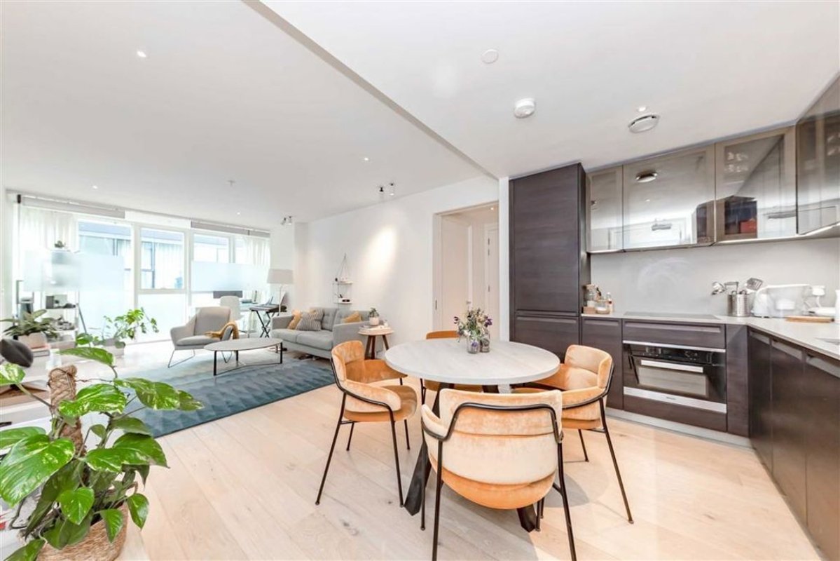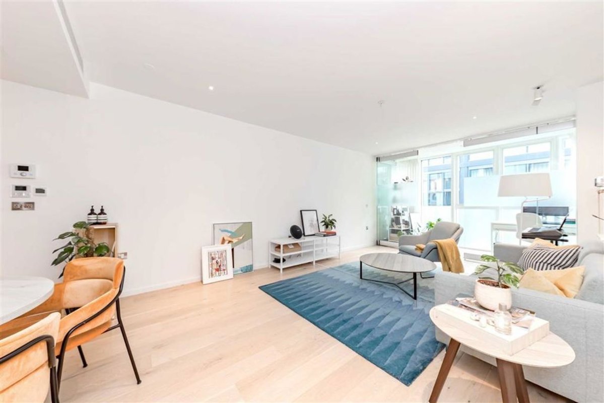 A modern one bedroom apartment in a secure development. This property offers an open plan living area with a fully integrated kitchen and floor to ceiling windows, one bedroom and a private winter garden.