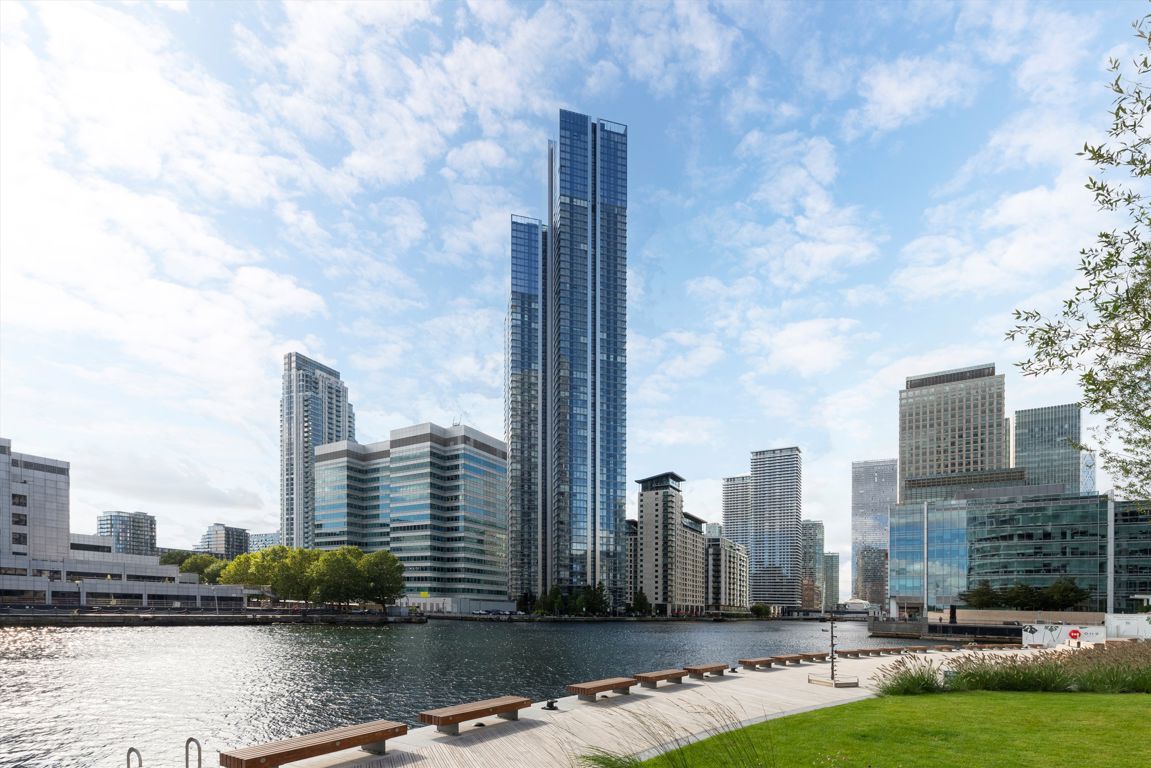 A modern high end, two bedroom, two bathroom apartment in Berkeley Homes new South Quay Plaza. Residents benefit from being members of The Quay Club which includes a swimming pool, vitality pool, sauna and steam room.