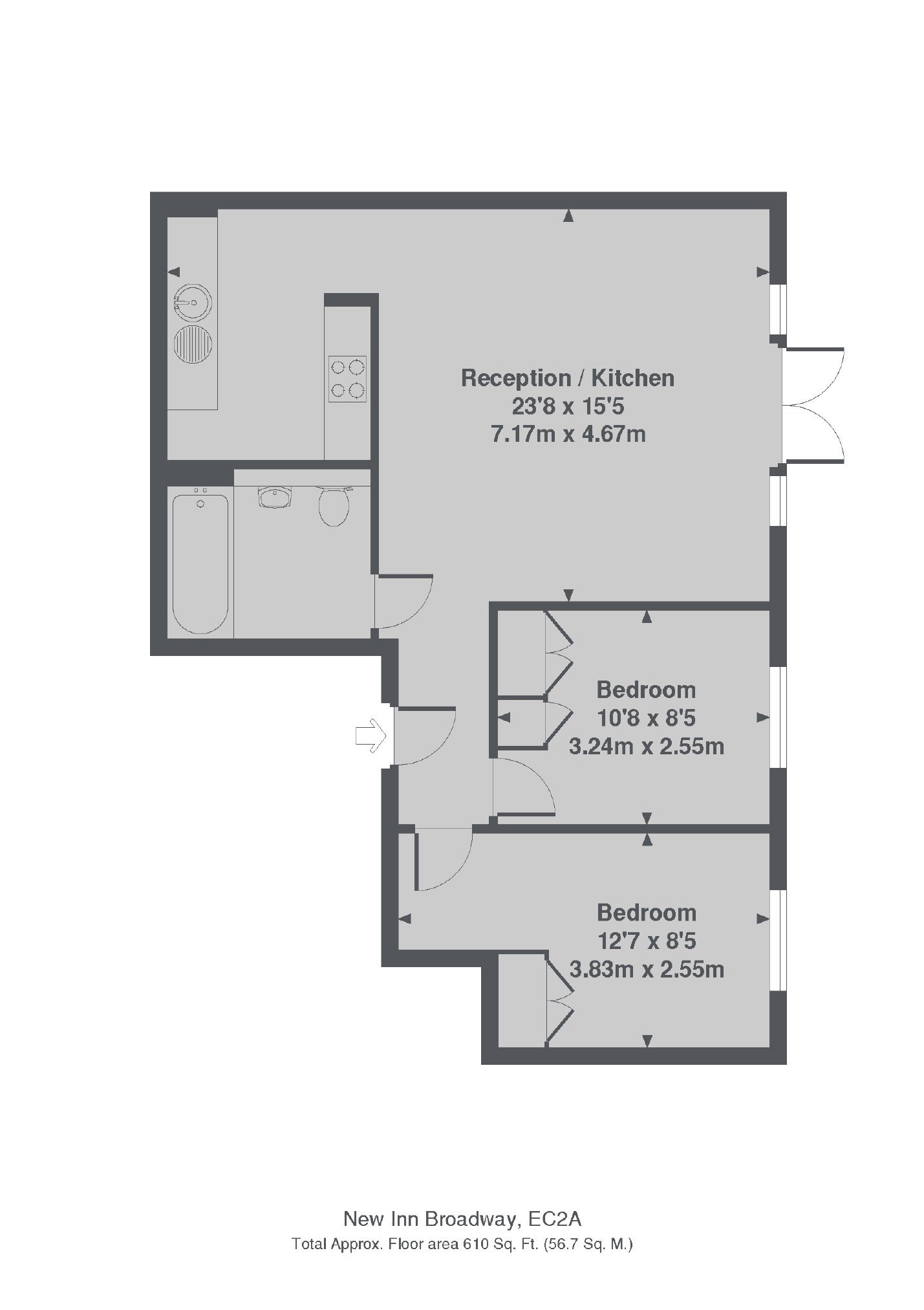 A fantastic two bedroom industrial style warehouse conversion in the Heart of Shoreditch. The apartment has plenty of character including polished resin floors & exposed concrete ceilings, offering modern open plan living space with two double bedrooms and a family bathroom.