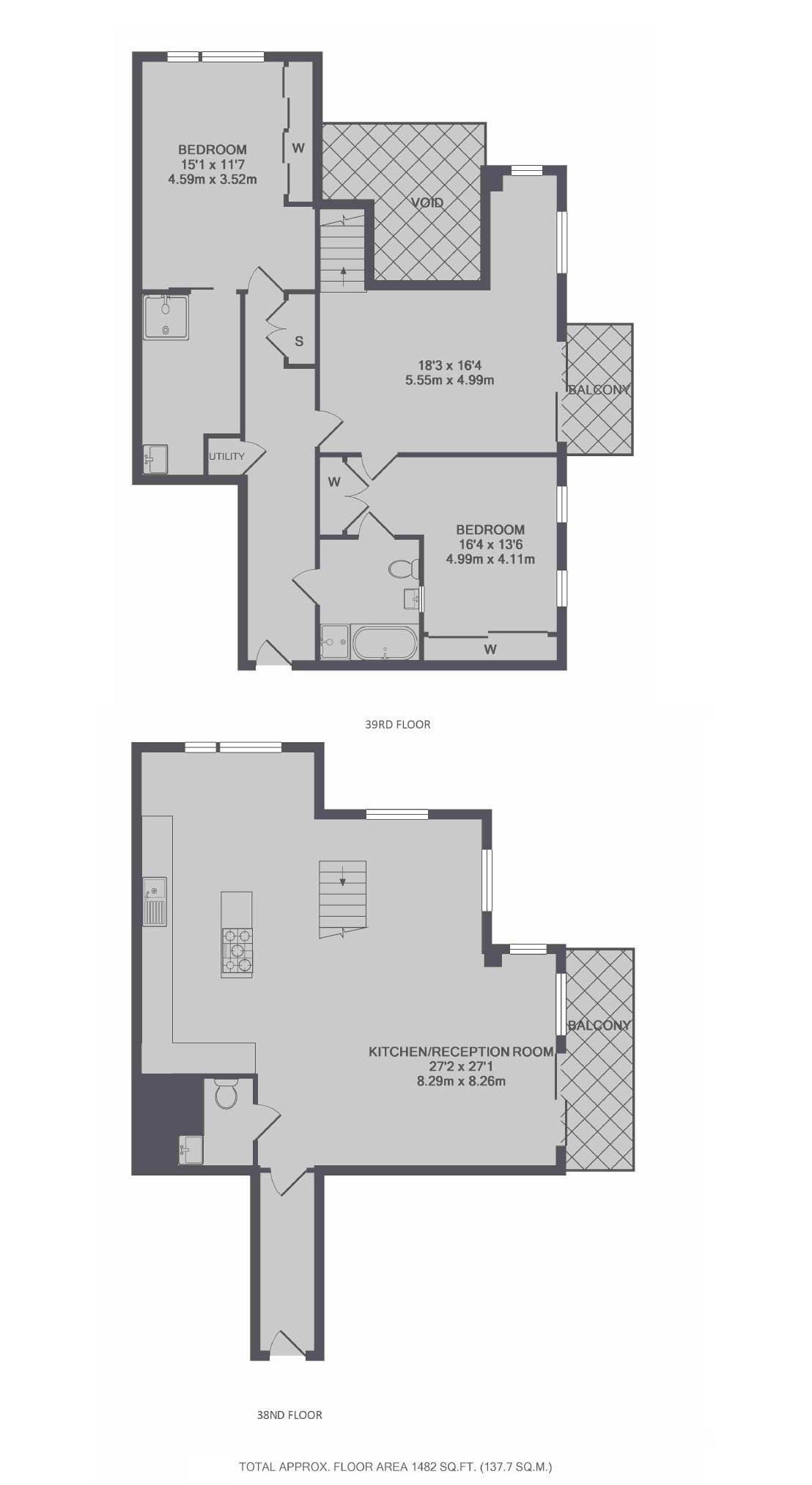 A spectacular duplex apartment on a higher floor of this sought after development. This large apartment has two bedrooms, floor to ceiling windows and and two private balconies with breath taking views.