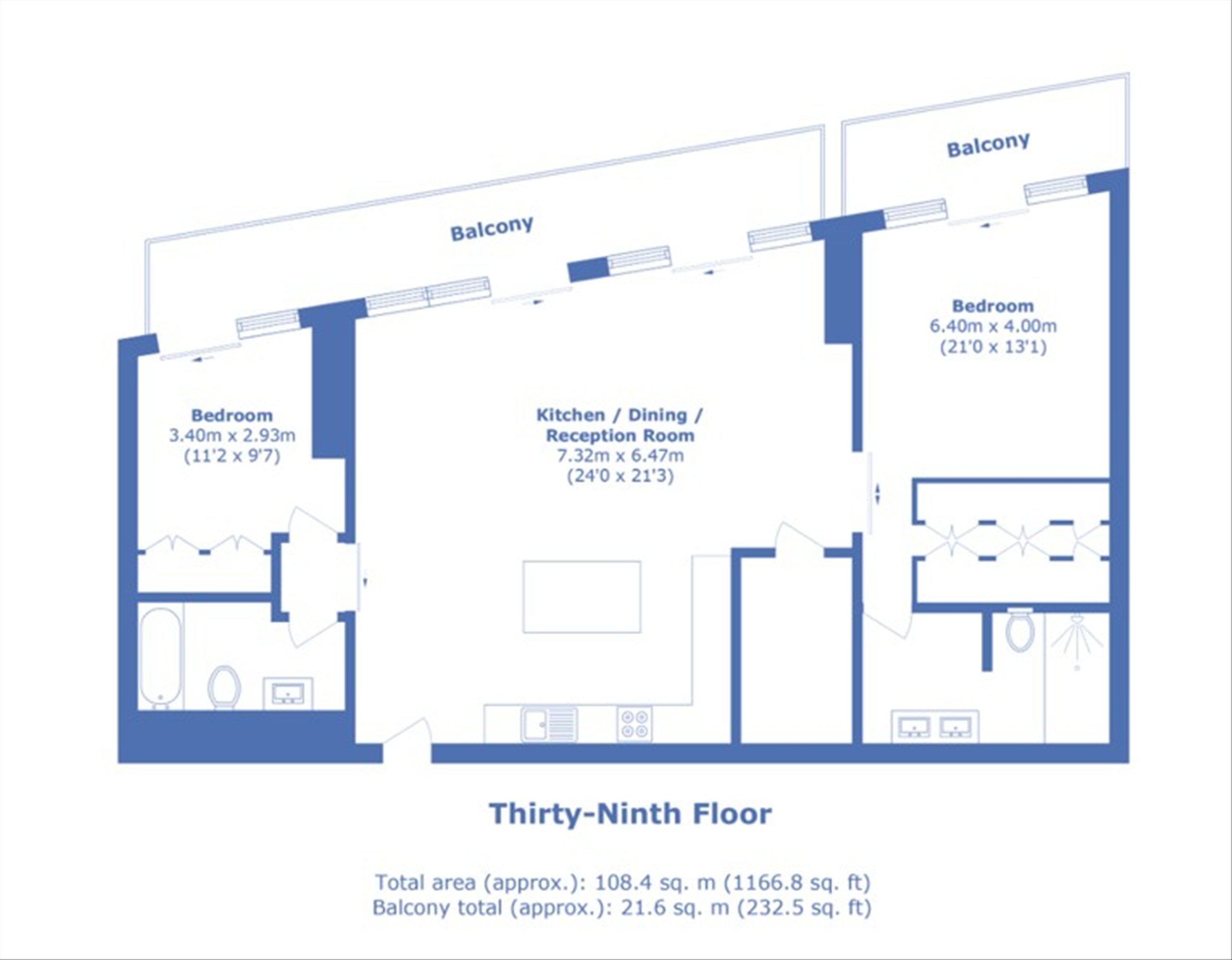 An exceptional sub-penthouse apartment located on the 39th floor of the prestigious 10 Park Drive development in Canary Wharf. This fully furnished residence extends to approximately 1,166 sqft and features floor-to-ceiling windows throughout, and offering breathtaking panoramic views across the Canary Wharf skyline. Two private balconies further enhance the outlook and sense of space.