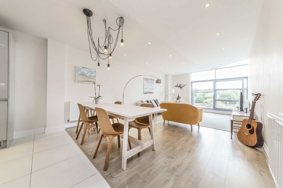A stunning penthouse two bedroom apartment offering direct river views from all principal rooms, with floor-to-ceiling windows throughout framing uninterrupted views across the river and Isleworth Ait. This modern-build home features an open-plan living area with a Juliet balcony, two generous double bedrooms, two bathrooms, access to secure bike storage and underground parking