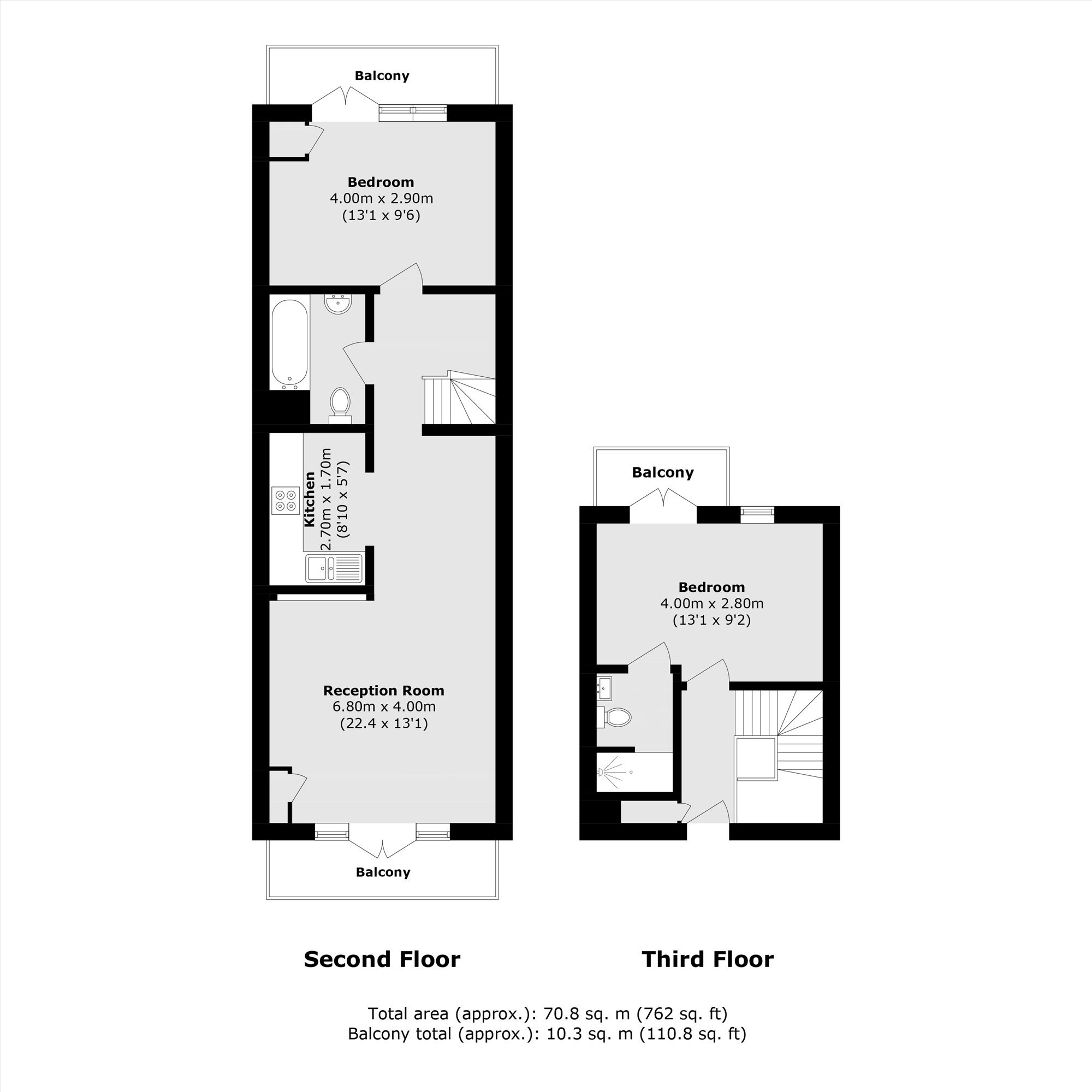 A duplex apartment comprising two double bedrooms, two bathrooms and three private balconies. The contemporary kitchen is semi-open plan and parking is available within the development by additional negotiation.