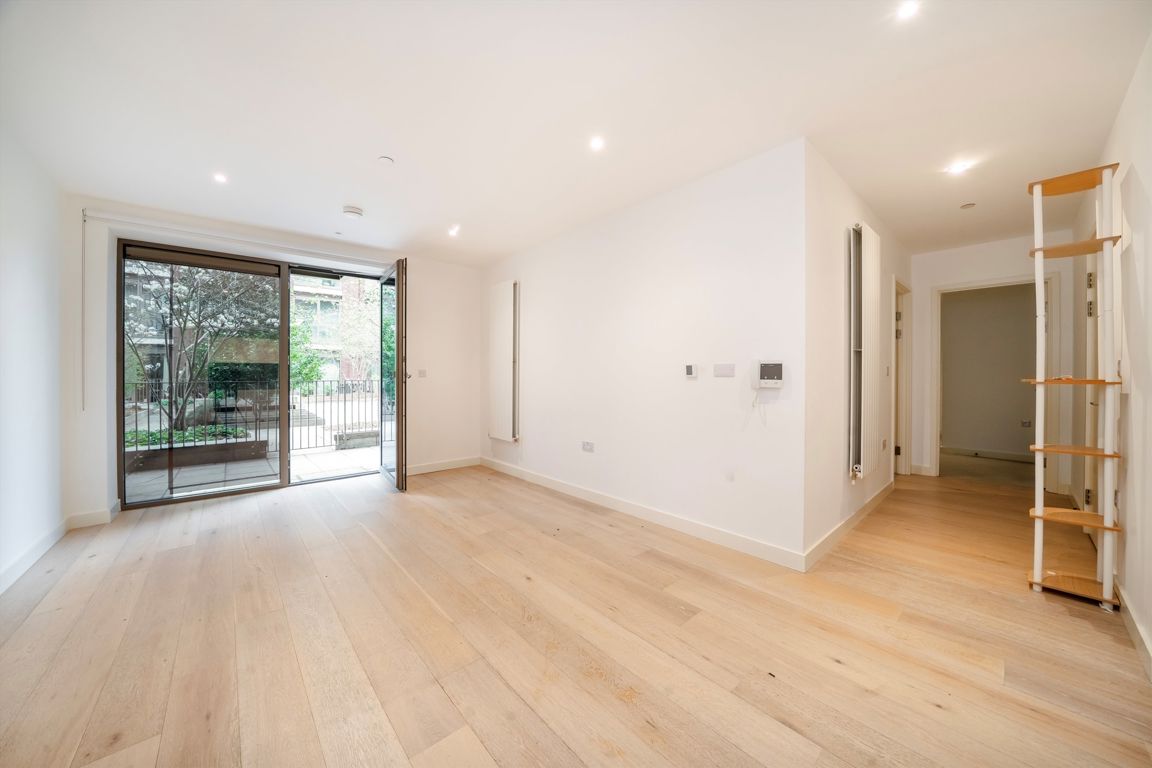 A two-bedroom ground-floor apartment in this sought-after development, comprising an open-plan reception, wooden flooring, and a private patio.