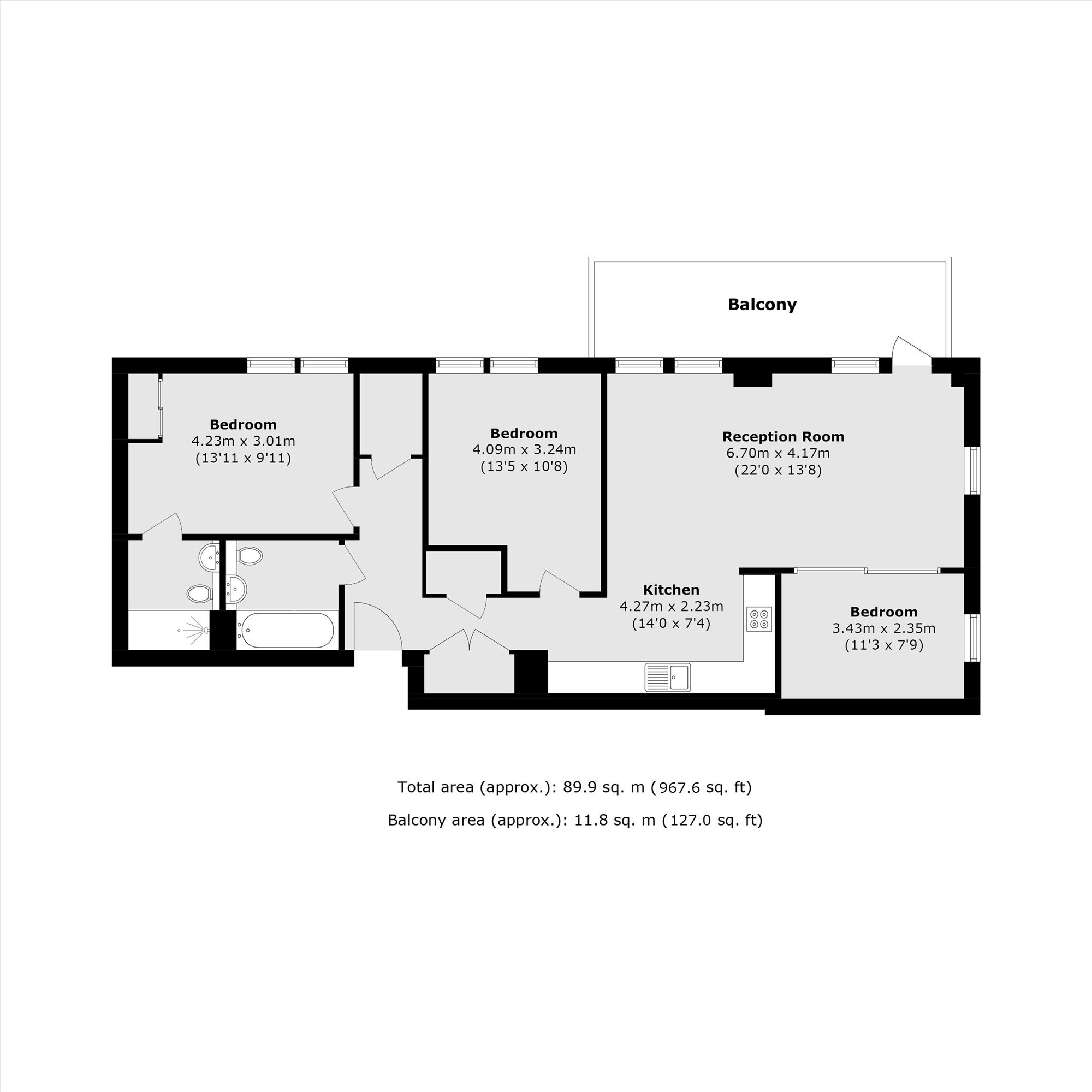 Three bedroom apartment in Effra Gardens with a bright reception room and open dining space. The property offers a modern fitted kitchen, separate utility area and well-proportioned bedrooms. Large windows provide excellent natural light and views across the surrounding area.