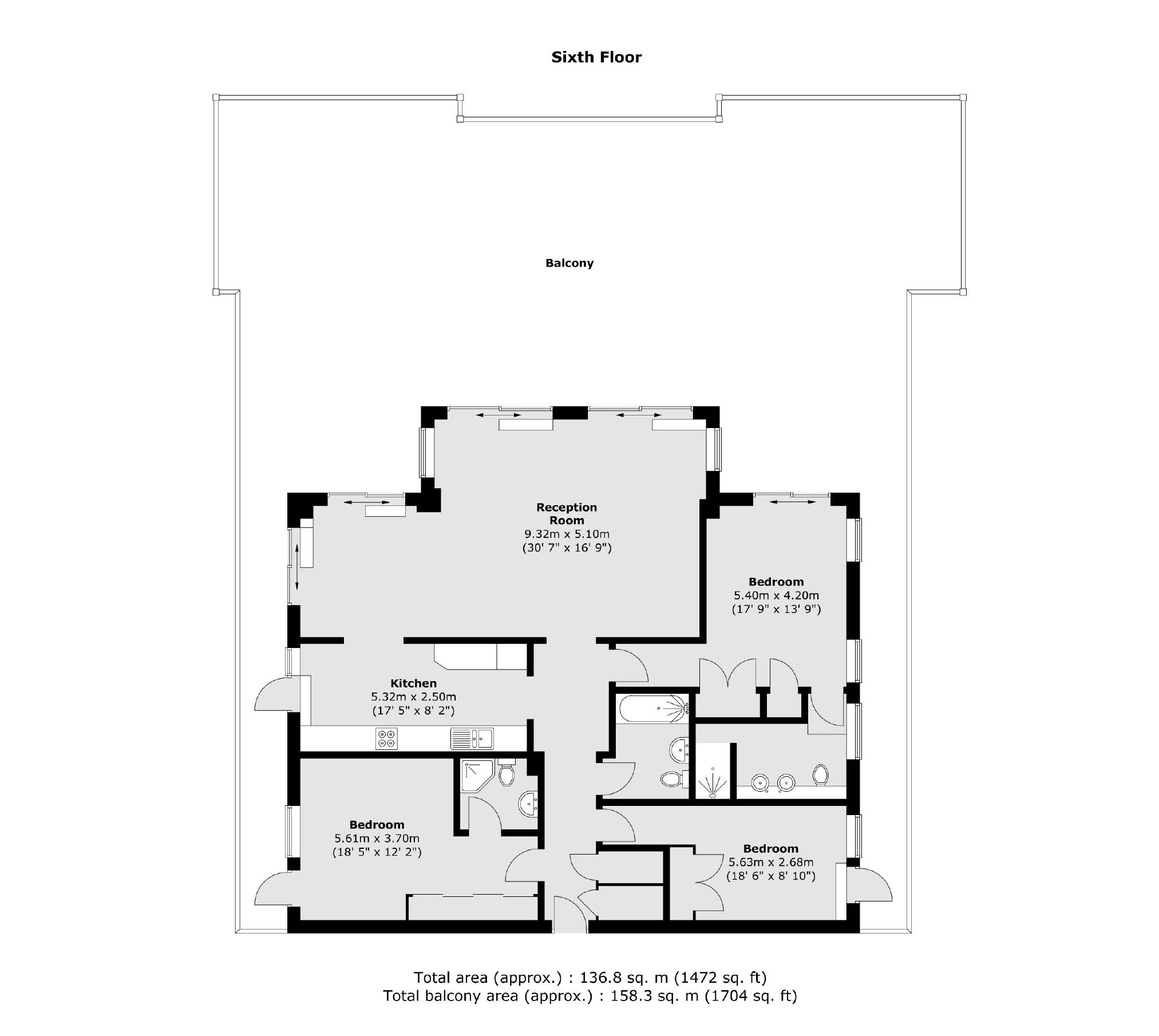 - Three Double Bedrooms