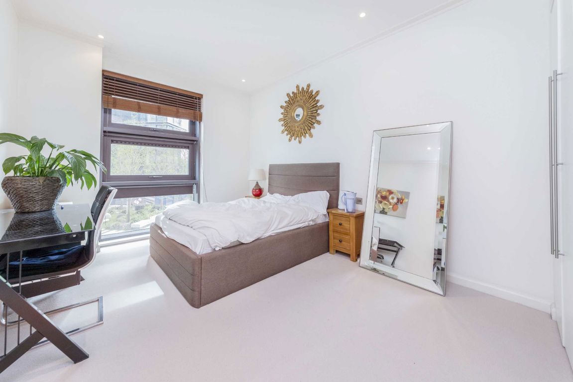 A two bedroom property on first floor of Discovery Dock. This property has a spacious living room looking onto the dock, a semi open kitchen with integrated appliances, two double bedrooms, two bathrooms, wood floors and ample storage. Also includes a concierge service and residents gym pool and it comes with parking.