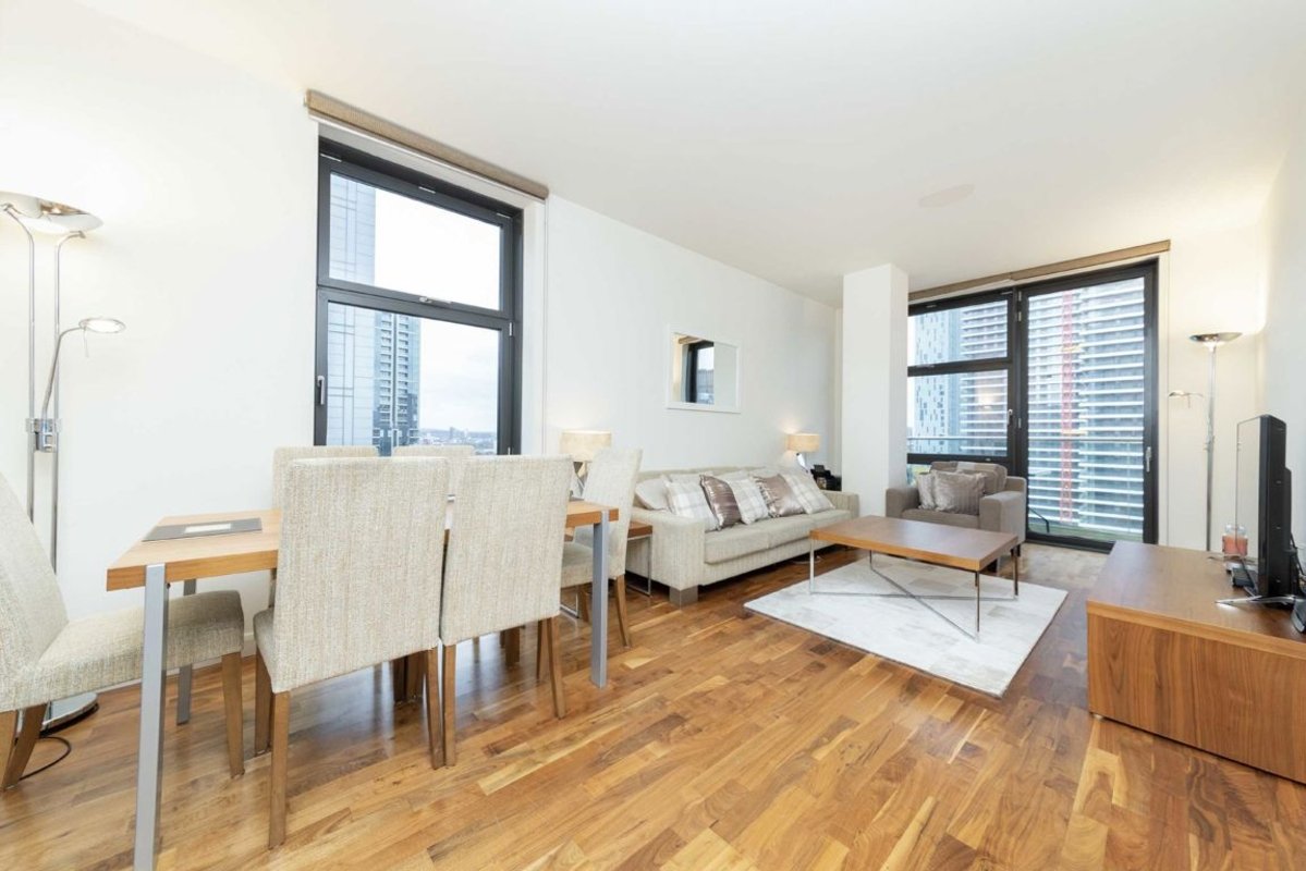 An exceptional two bedroom apartment on a high floor of the iconic Discovery Dock. This property has a large open plan living space, a private balcony and residents leisure facilities.