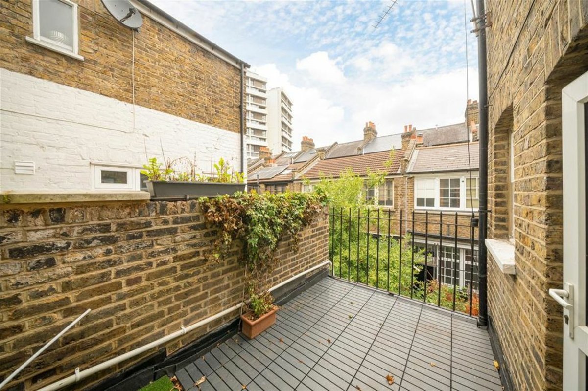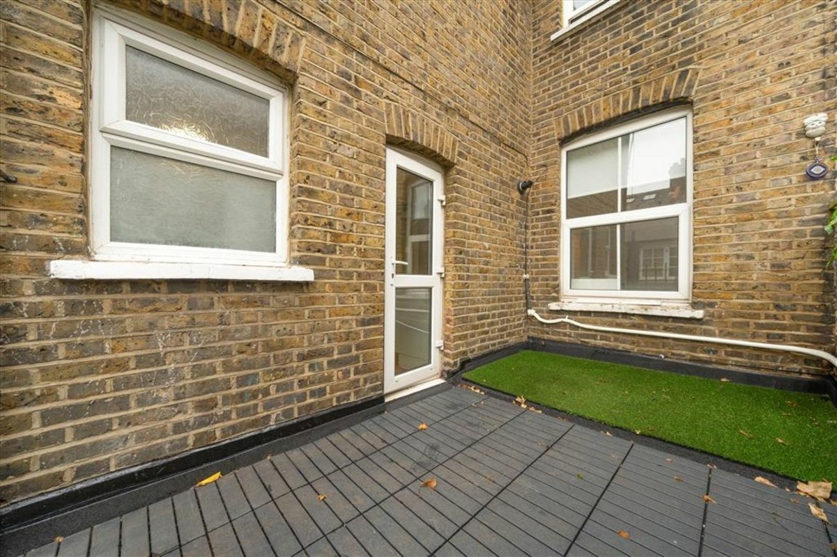 A lovely one bedroom first floor apartment with private terrace. This period conversion apartment includes a good living space, hallway kitchen and separate bathroom. There is also a peaceful private terrace at the back and white wooden flooring throughout. The apartment is partly furnished.