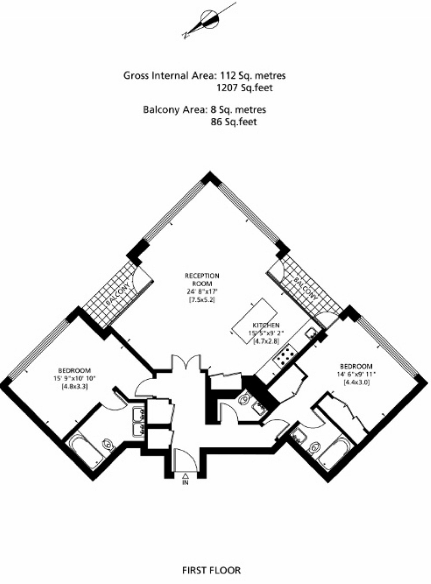 A stunning two bedroom, two bathroom, first floor apartment with two balconies and a fabulous open plan sitting room/kitchen/dining room. One secure underground car park space. The property is decorated in classic, neutral style and has wonderful natural light.