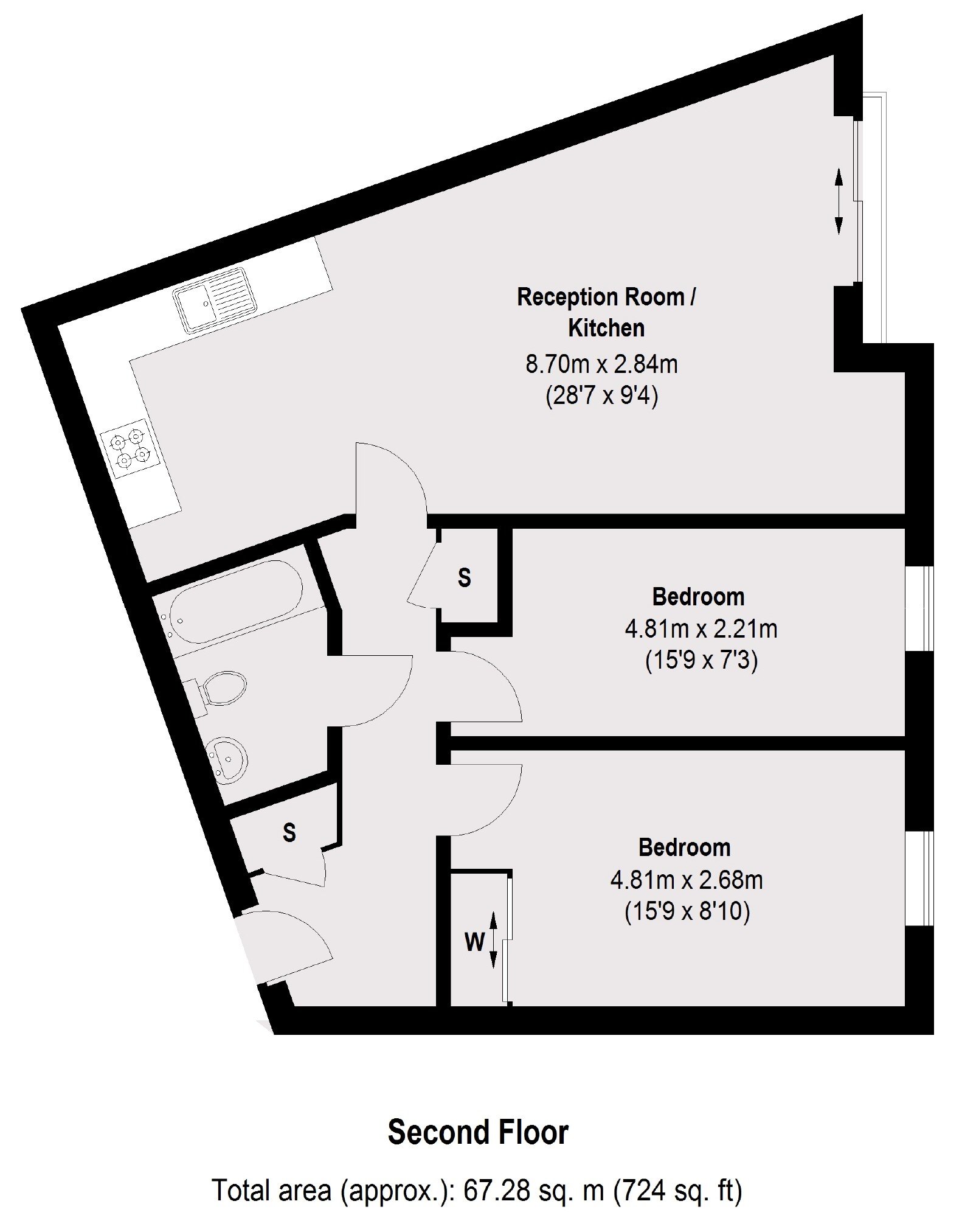 A well sized two bedroom apartment located on the second floor of a secure development. This apartment has a large open plan reception/kitchen area, two double bedrooms and a main bathroom. The property is available furnished.