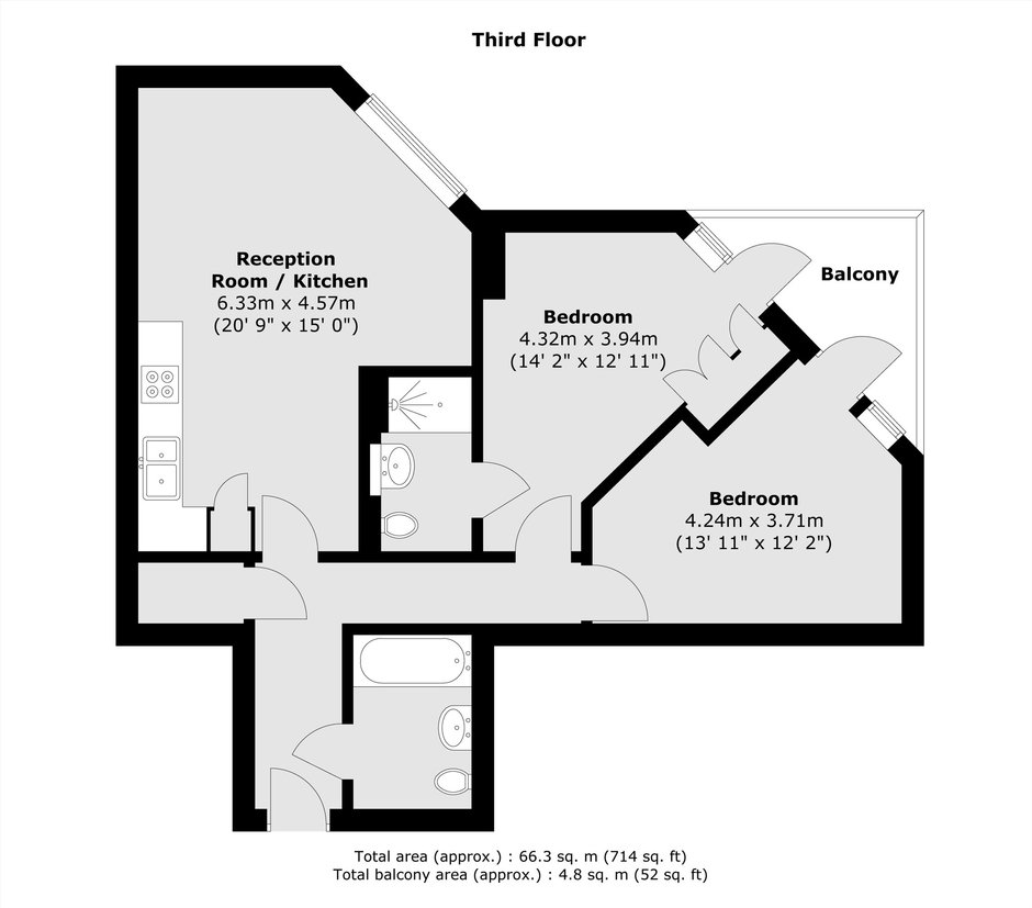 Two double bedroom, two bathroom property with an open-plan kitchen and living space. Set in a secure gated development, the property is on the third floor with lift access and has a private balcony.
