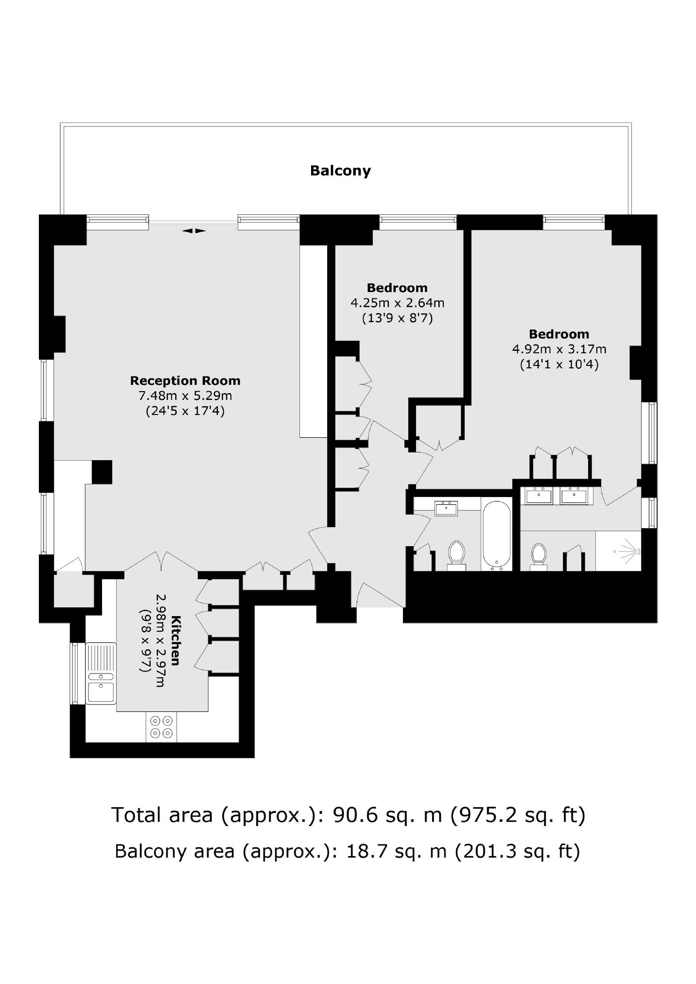 A beautifully presented two double bedroom, two bathroom apartment with amazing direct views of the River Thames from the private balcony which is covered. The heating and hot water is included.