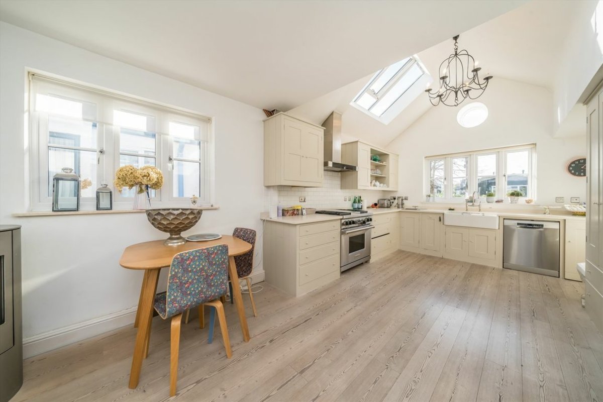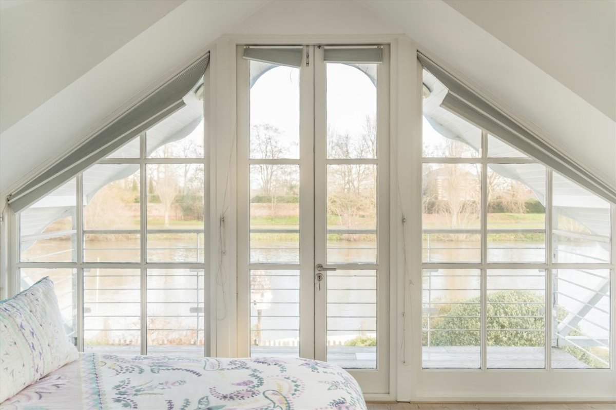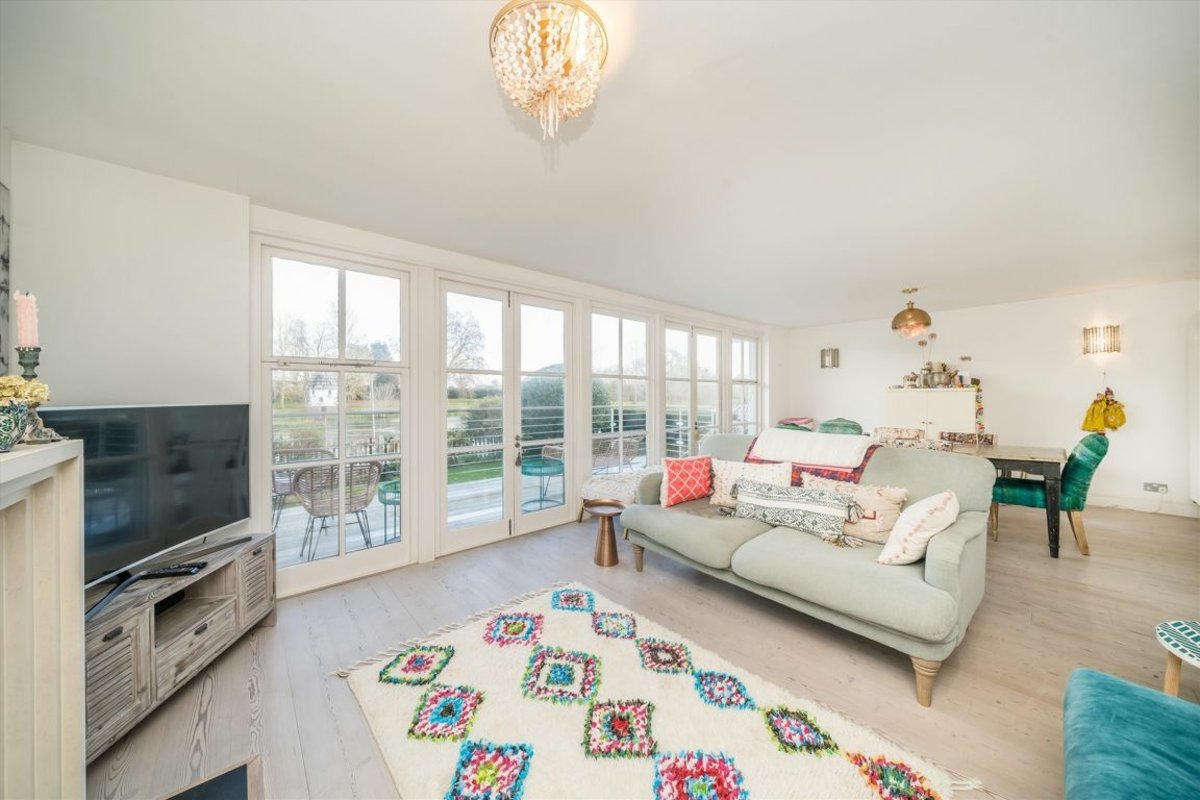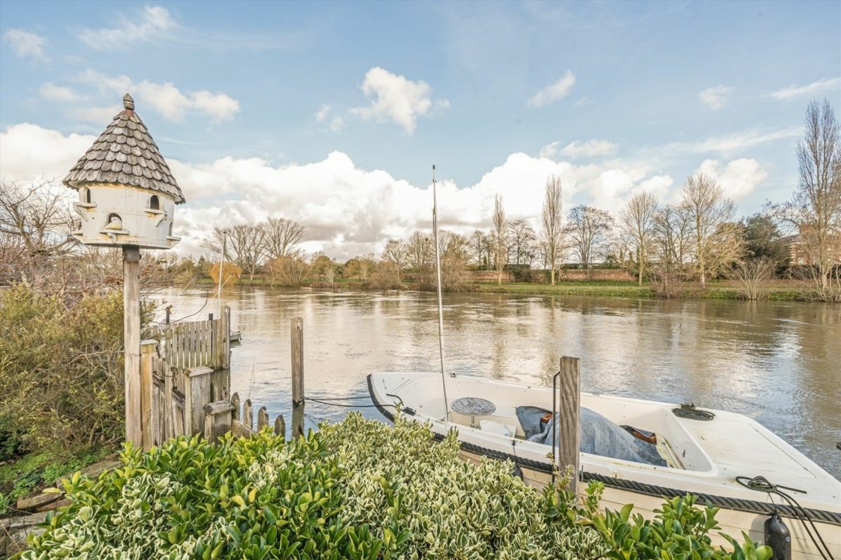 A beautiful riverside detached home on the River Thames, situated on a private Island opposite the grounds of the historic Hampton Court Palace. The property is accessed via a gated footbridge and is in the heart of Thames Ditton village. The property enjoys generous accommodation set out over two floors and views of the Thames at the end of the rear garden, this is simply a unique property.