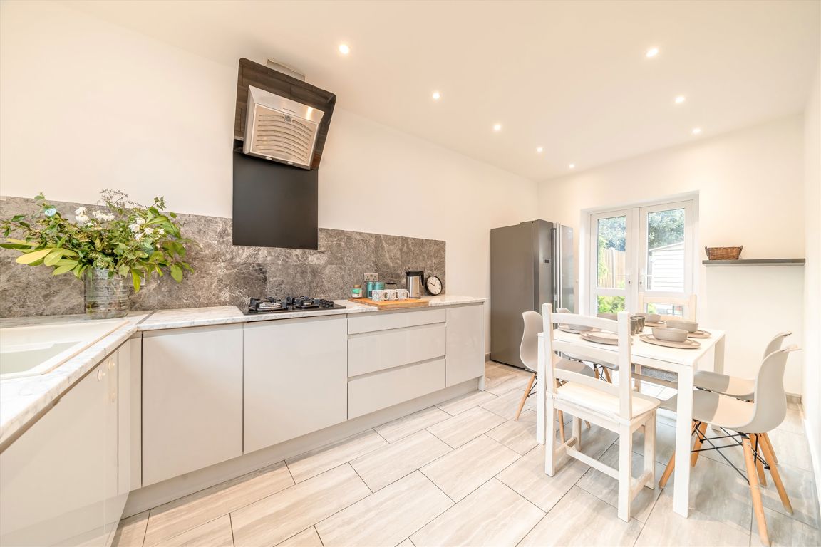 A modern five bedroom house set over three floors. The ground floor offers a spacious living area, leading into a separate kitchen and a large garden space perfect for entertaining. The first floor offers a double bedroom, two single bedrooms, and a family bathroom, while the top floor consists of two large bedrooms, both having their own en-suite bathrooms. The property also benefits a spacious driveway offering off-street parking for two vehicles.