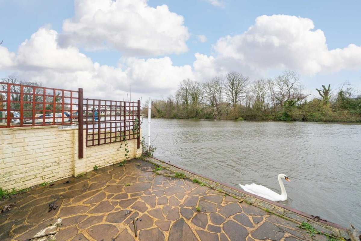 Stunning riverside bungalow with open-plan living, swimming pool, private mooring, spacious bedrooms and exceptional outdoor entertaining spaces.
