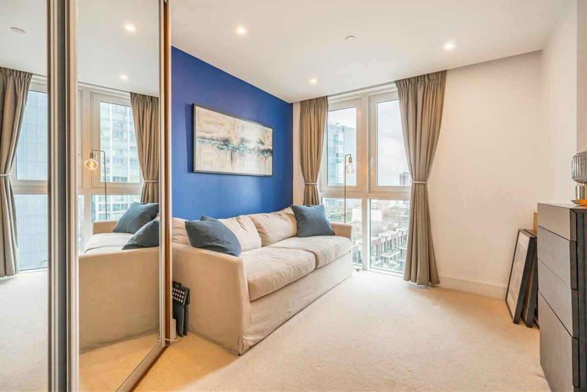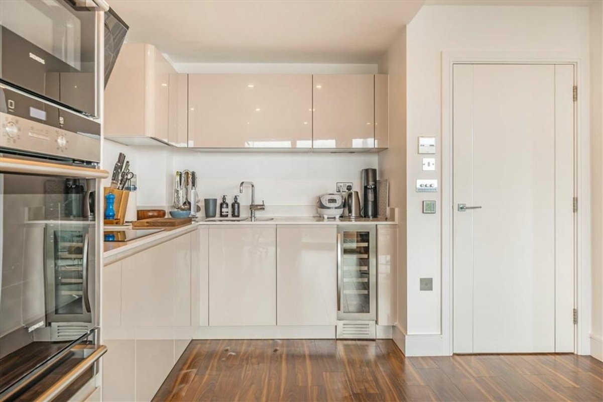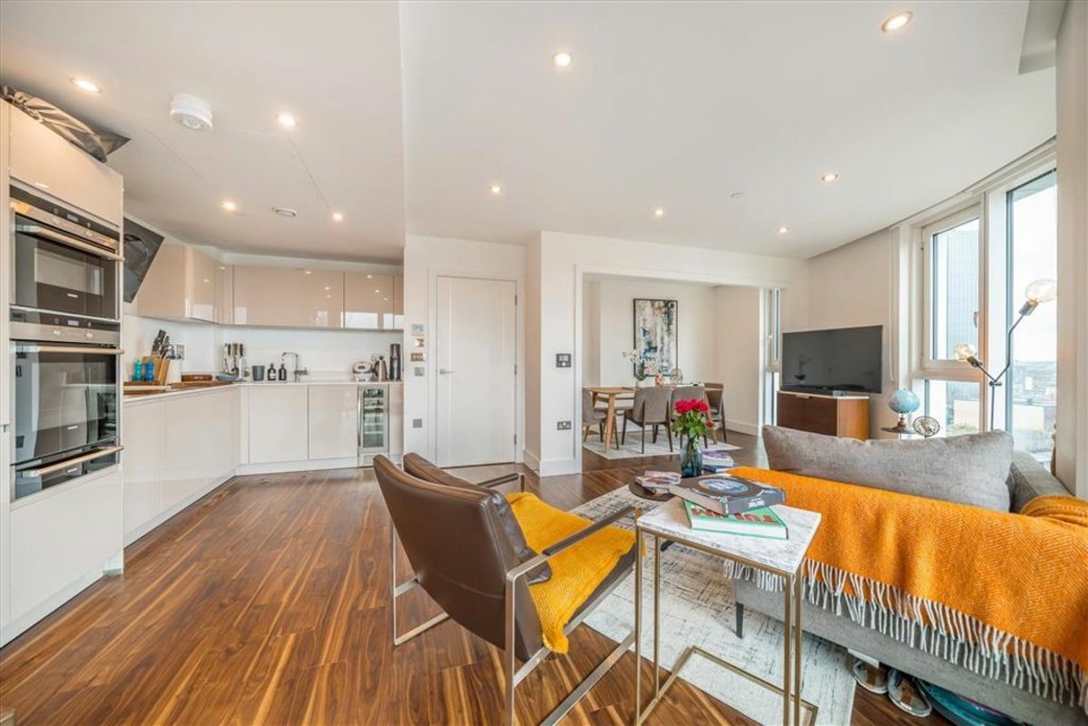 This two-bedroom apartment, located on the 13th floor of the sought-after Altitude Point, offers modern city living with far-reaching westerly views of the London skyline. The apartment boasts an open-plan layout, perfect for both relaxing and entertaining. The contemporary kitchen is fully integrated, flowing into a bright reception room, where floor-to-ceiling windows fill the space with natural light, from here you step out onto the private balcony to enjoy the panoramic views stretching across the city. The principal bedroom offers generous built-in storage and a luxurious ensuite bathroom, while the second bedroom also features built-in storage. A stylish family bathroom and two additional storage spaces in the hallway add convenience to this perfectly designed home.