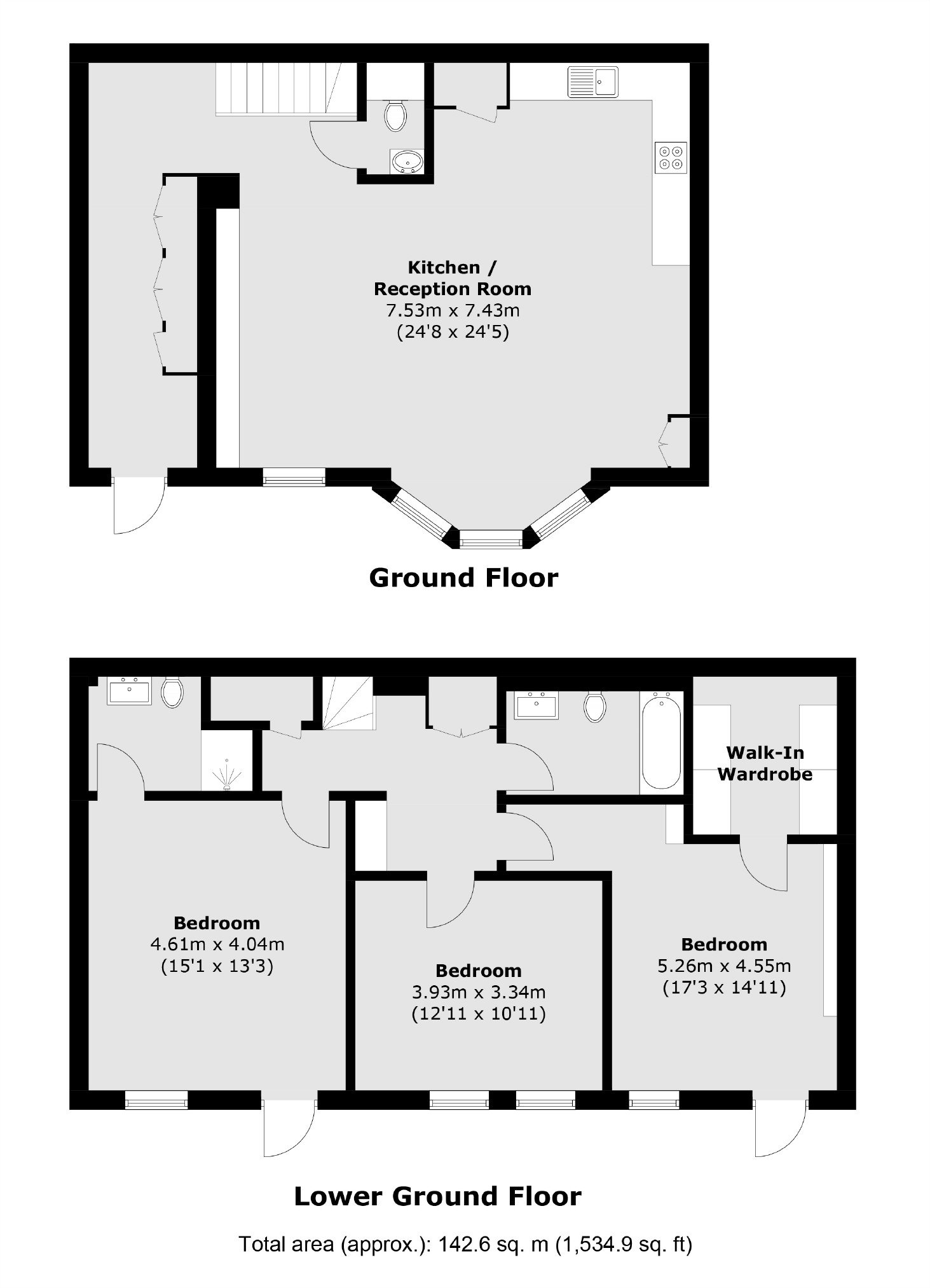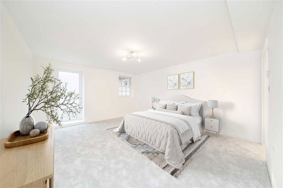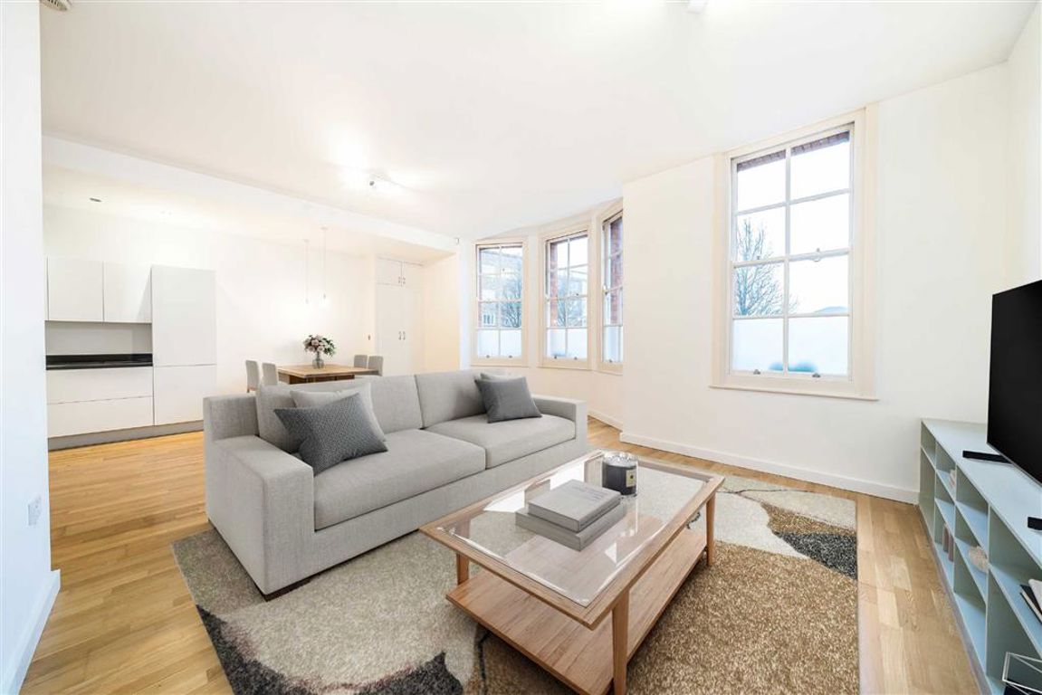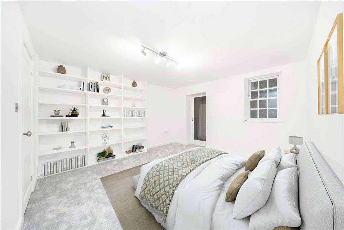 Set within the former Victorian Magistrates Court, this three bedroom apartment with its own private entrance offers a spacious, open plan reception/kitchen area on the ground floor, featuring a fully integrated, modern kitchen, a large bay window and a built in shelving unit intended for media set up. The lower ground floor provides three large double bedrooms, one with en suite. The primary bedroom also features a walk in wardrobe complete with shelving with access to a private patio.