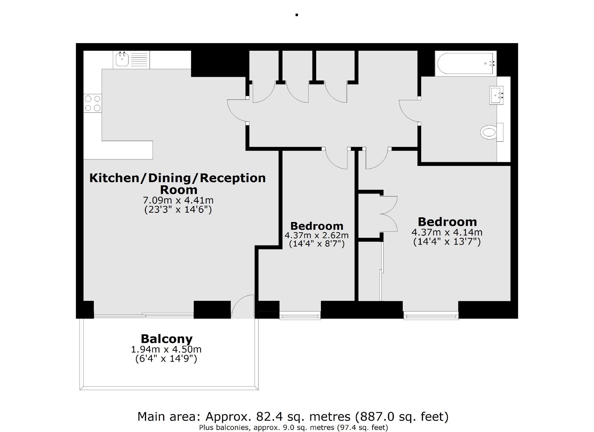 A smartly presented 6th floor apartment with fantastic skyline views, a large balcony, an open plan kitchen and living room, two double bedrooms and a large family bathroom. Plus 24 hr concierge. Sold Chain Free.