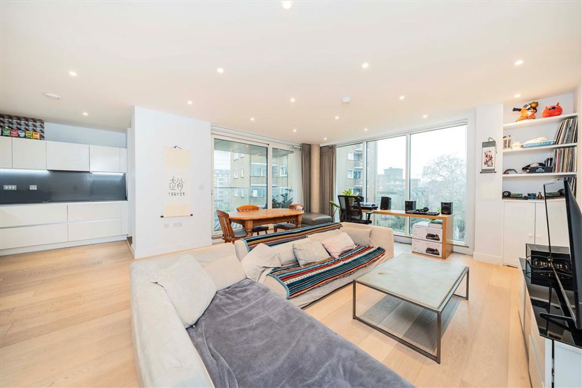 An immaculately presented 5th floor apartment with stunning skyline views, a very large open plan living room & kitchen, a terrace with ample room for dining, two double bedrooms, two bathrooms & an additional balcony accessed via both bedrooms.