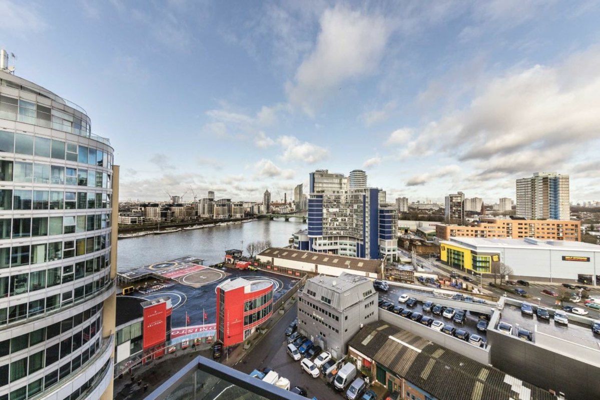 Bridges Court Road runs parallel to The Thames at Battersea.