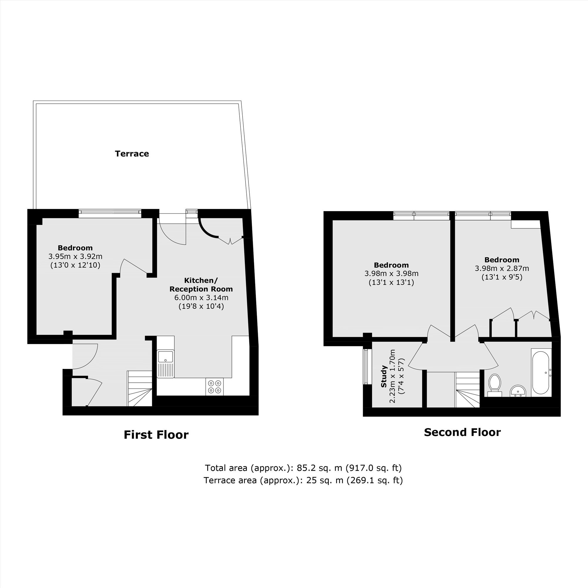 Located across the first and second floors, the accommodation comprises an open-plan kitchen/living area, three double bedrooms, a study, a family bathroom, and a large private terrace overlooking Regent's Canal. The property also includes private off-street parking.