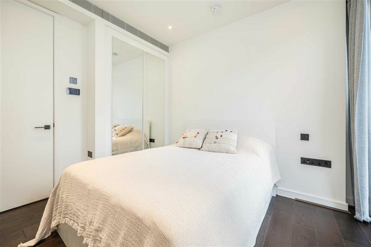 An immaculately presented 11th floor apartment with river-views, a private balcony, a generous open-plan kitchen and living room, two double bedrooms, two bathrooms and a high spec finish, as well as access to a 25 metre swimming pool, gym, sauna and 24 hour concierge.