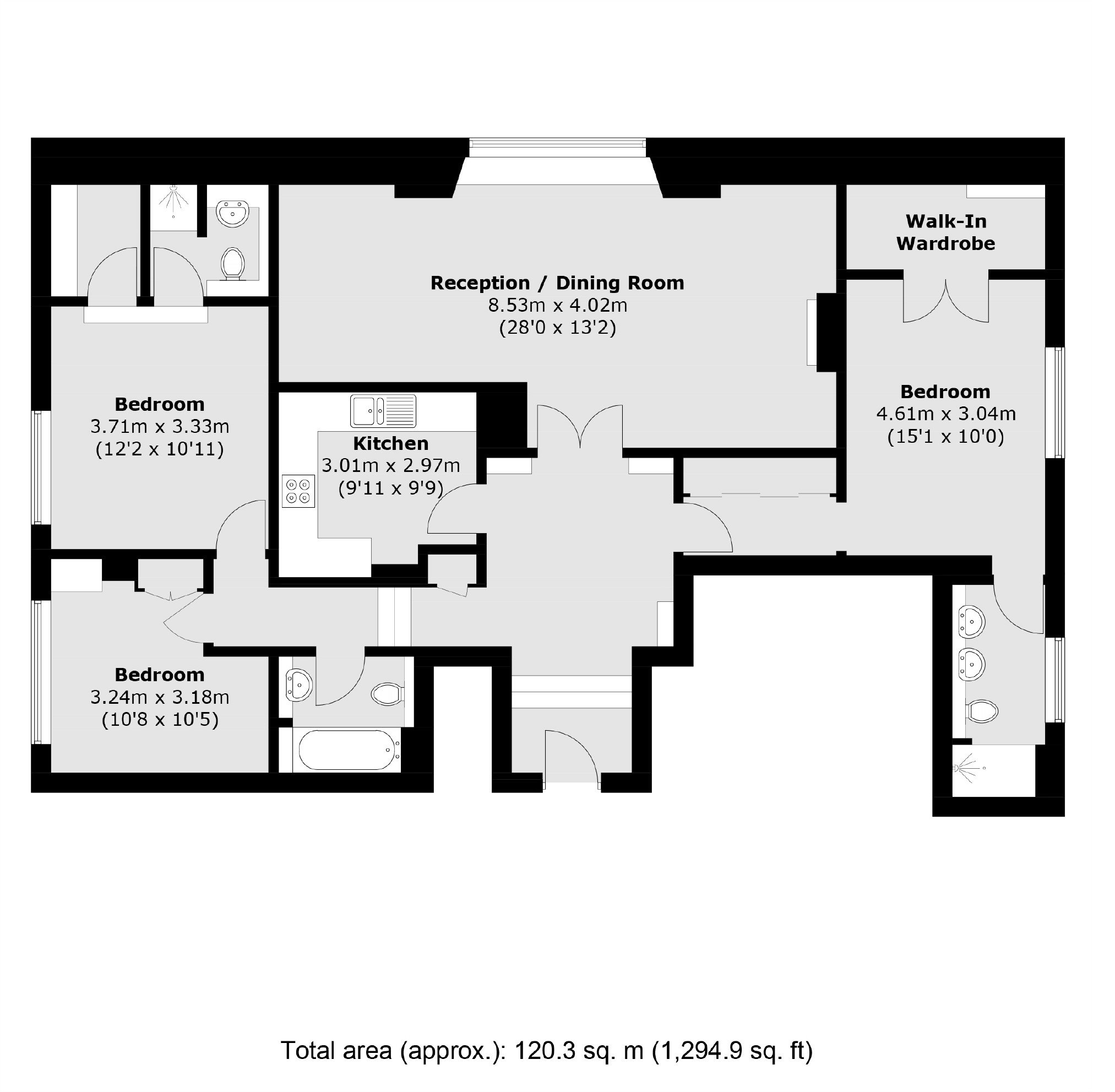 A very rarely available, almost 1,300 sq ft 5th floor apartment with views of the London Eye, a very spacious entrance hall, a large living room and separate kitchen, three double bedrooms, three bathrooms and ample storage. Sold with a Share of Freehold, two allocated parking spaces and a very large external storage cupboard.