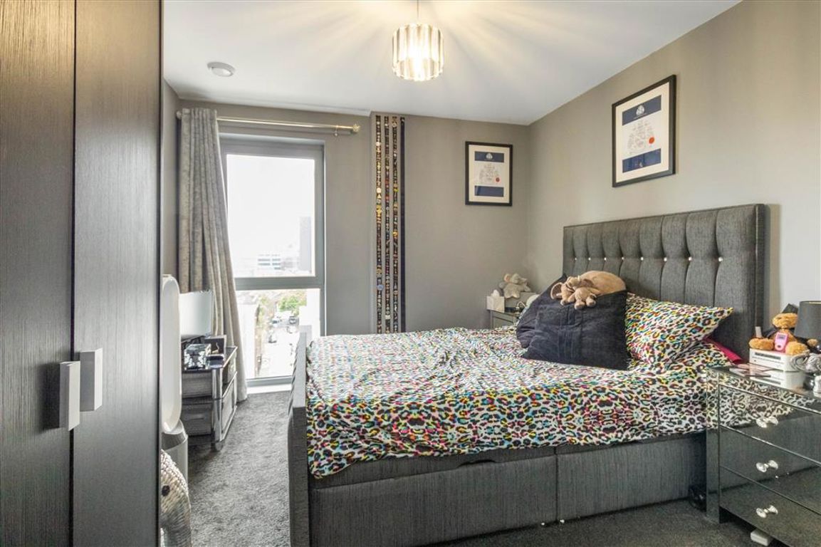 This one bedroom apartment is on the sixth floor of a modern development. It boasts a spacious open-plan reception room and a double bedroom with in-built storage and a further private balcony off of the lounge with views. The floor to ceiling windows around the property allow for natural light throughout. The development offers a 24hr concierge service and residents gym.