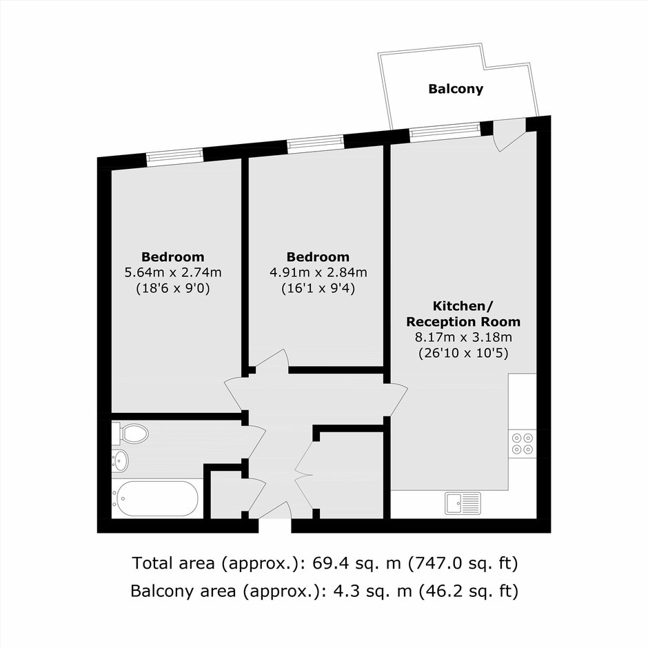 Two bedroom, one bathroom apartment set within a sought after modern development. The property has a spacious open plan living room with a fully integrated kitchen, this area has ample space to dine and leads out to the properties balcony which has good views and allows for plenty of natural light. The apartment has two double bedrooms with in-built storage, a family bathroom kept in modern condition and more storage can be found in the hallway.