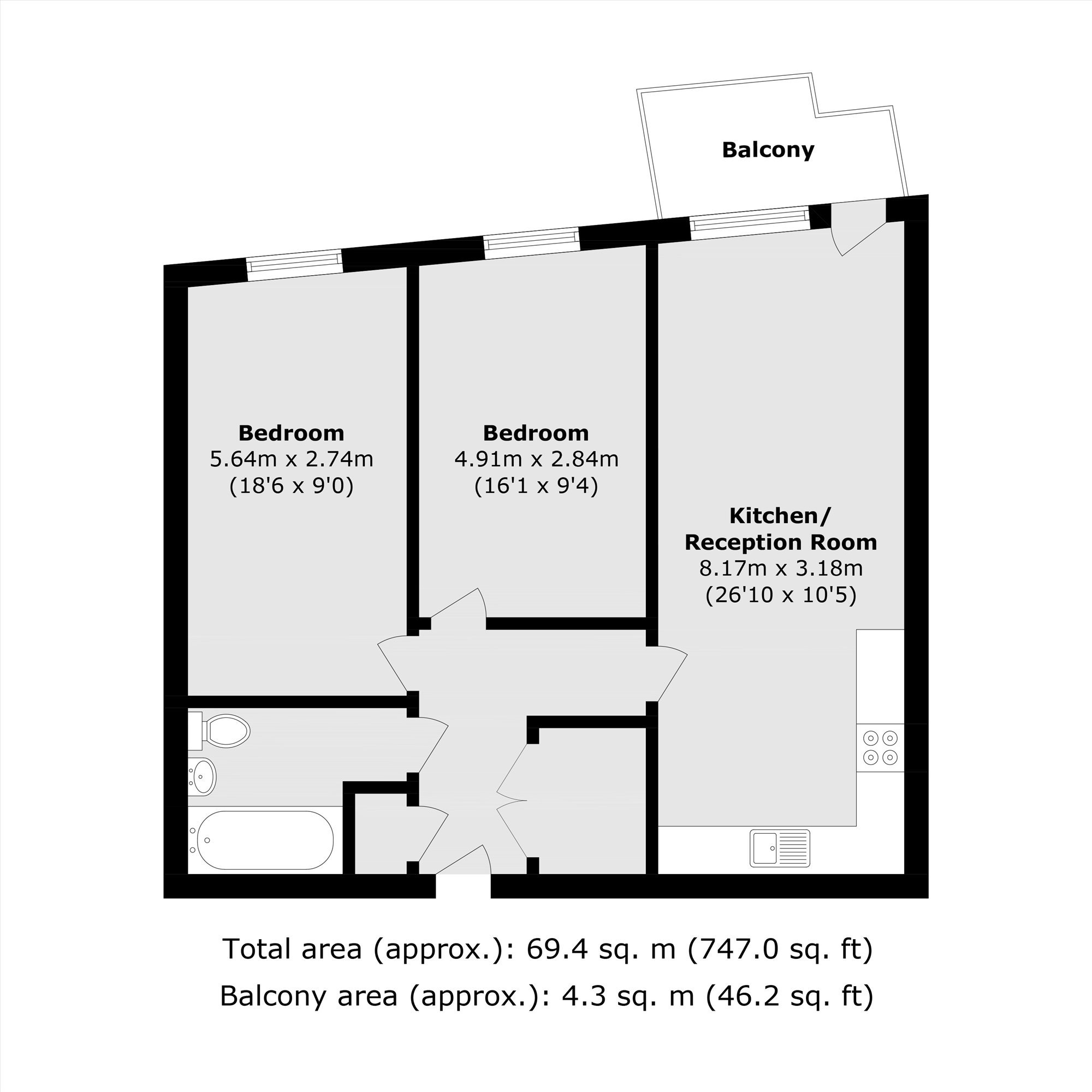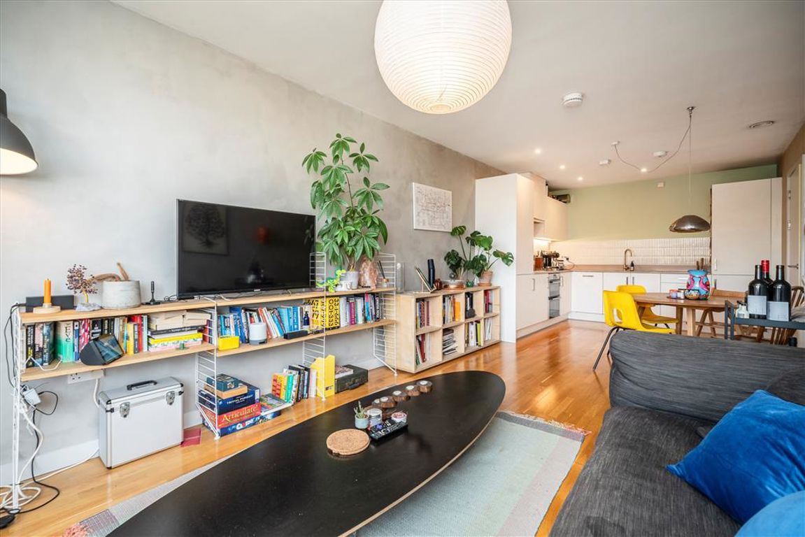 Two bedroom, one bathroom apartment set within a sought after modern development. The property has a spacious open plan living room with a fully integrated kitchen, this area has ample space to dine and leads out to the properties balcony which has good views and allows for plenty of natural light. The apartment has two double bedrooms with in-built storage, a family bathroom kept in modern condition and more storage can be found in the hallway.