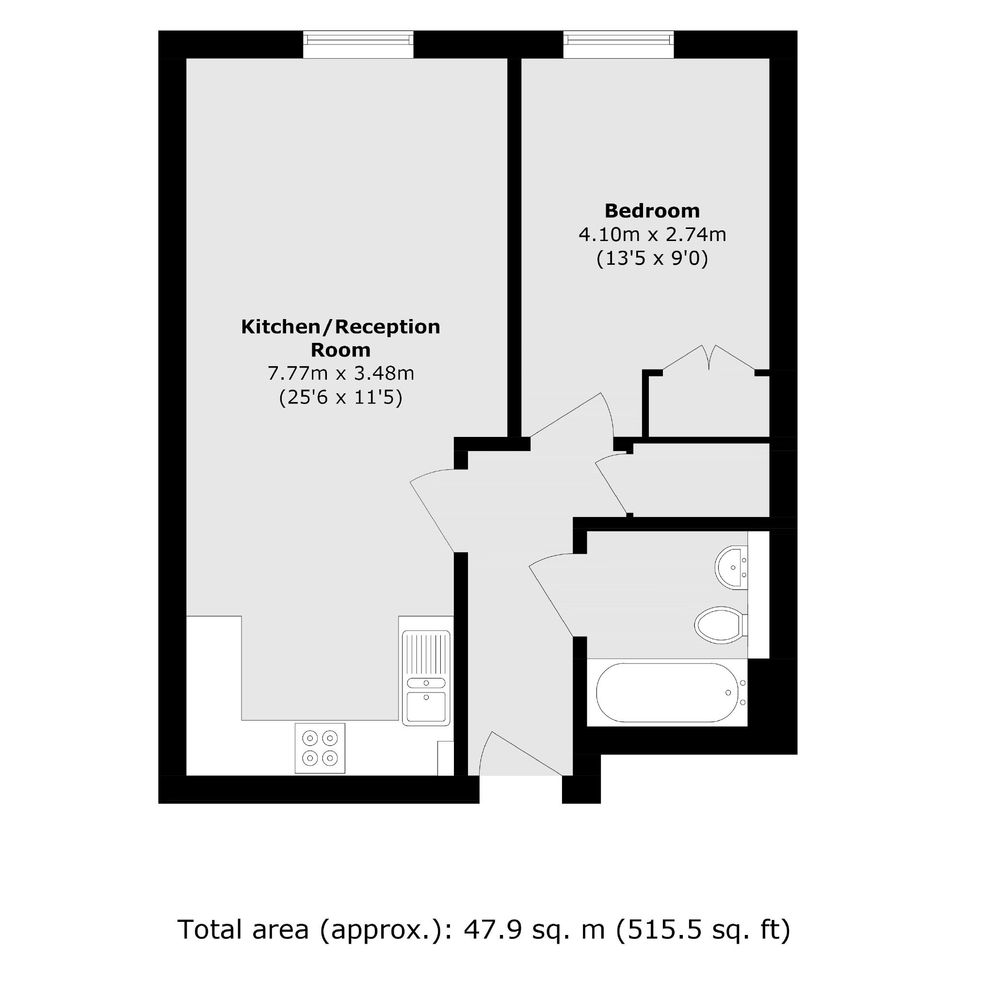 A highly attractive modern apartment, with a spacious open plan living room and kitchen, a generous double bedroom, three piece bathroom and ample built-in storage. Benefitting from a 24 hour concierge and sold chain free.