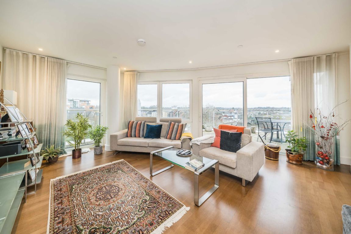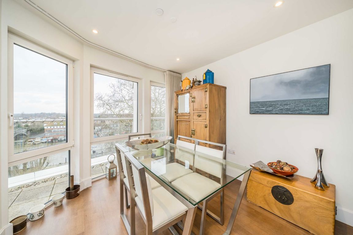 A stunning three bedroom, three bathroom riverside apartment positioned on the sixth floor of this landmark development, enjoying panoramic views over the River Thames and beyond.The apartment has been cleverly designed to maximise its exceptional outlook, with a spacious open plan living, dining and kitchen area forming the heart of the home. An array of river-facing windows floods the space with natural light and frames an ever-changing and impressive backdrop, creating a superb setting for bo...