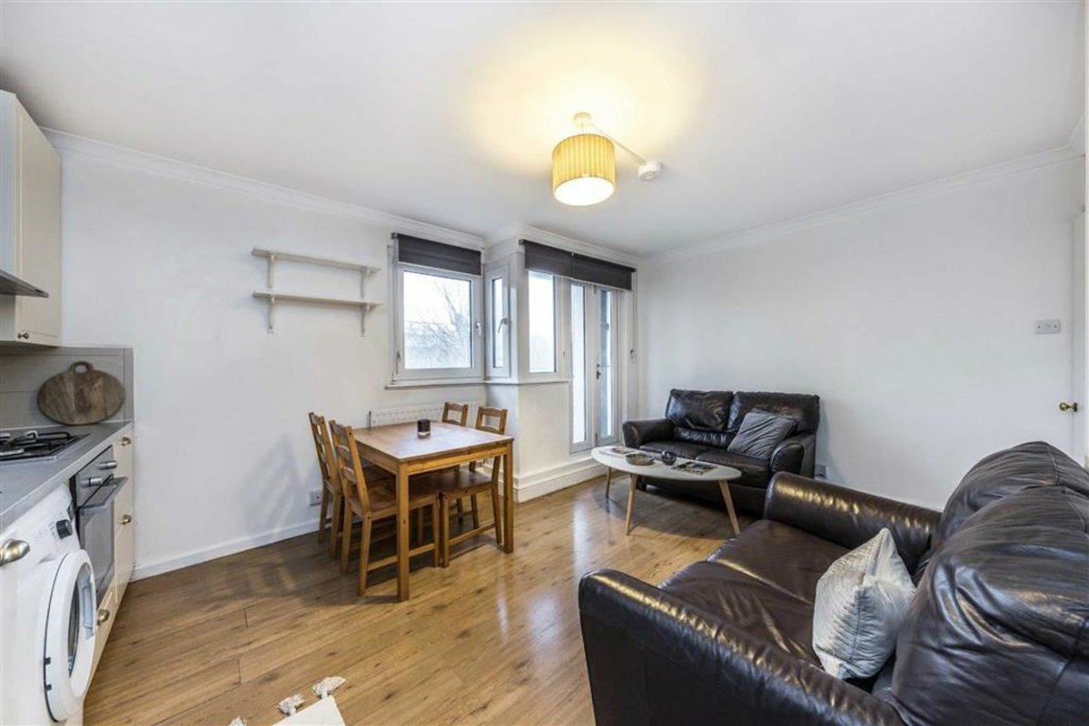 This west facing, four bedroom apartment offers and open plan reception/kitchen with access to a private balcony, wooden flooring throughout, and plenty of storage space.