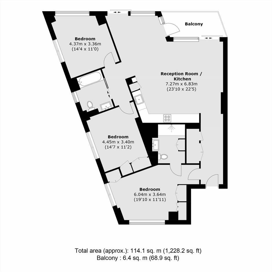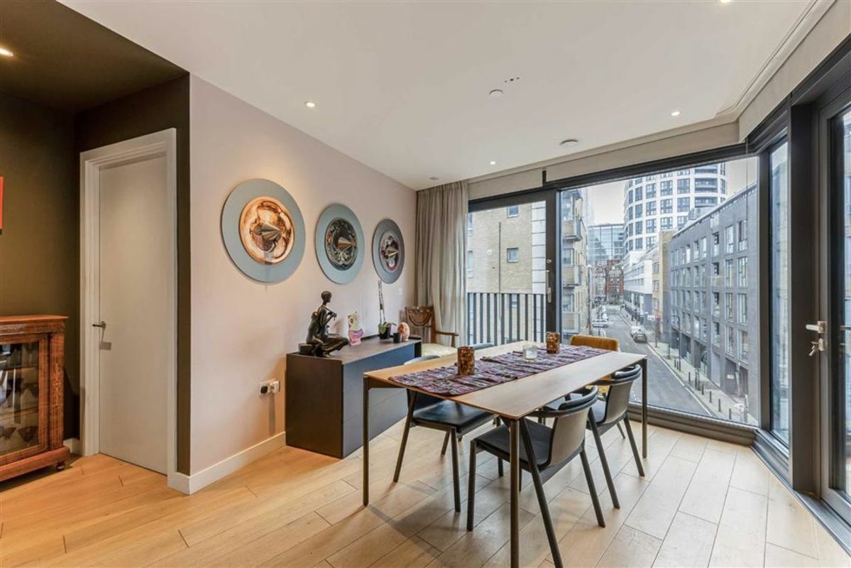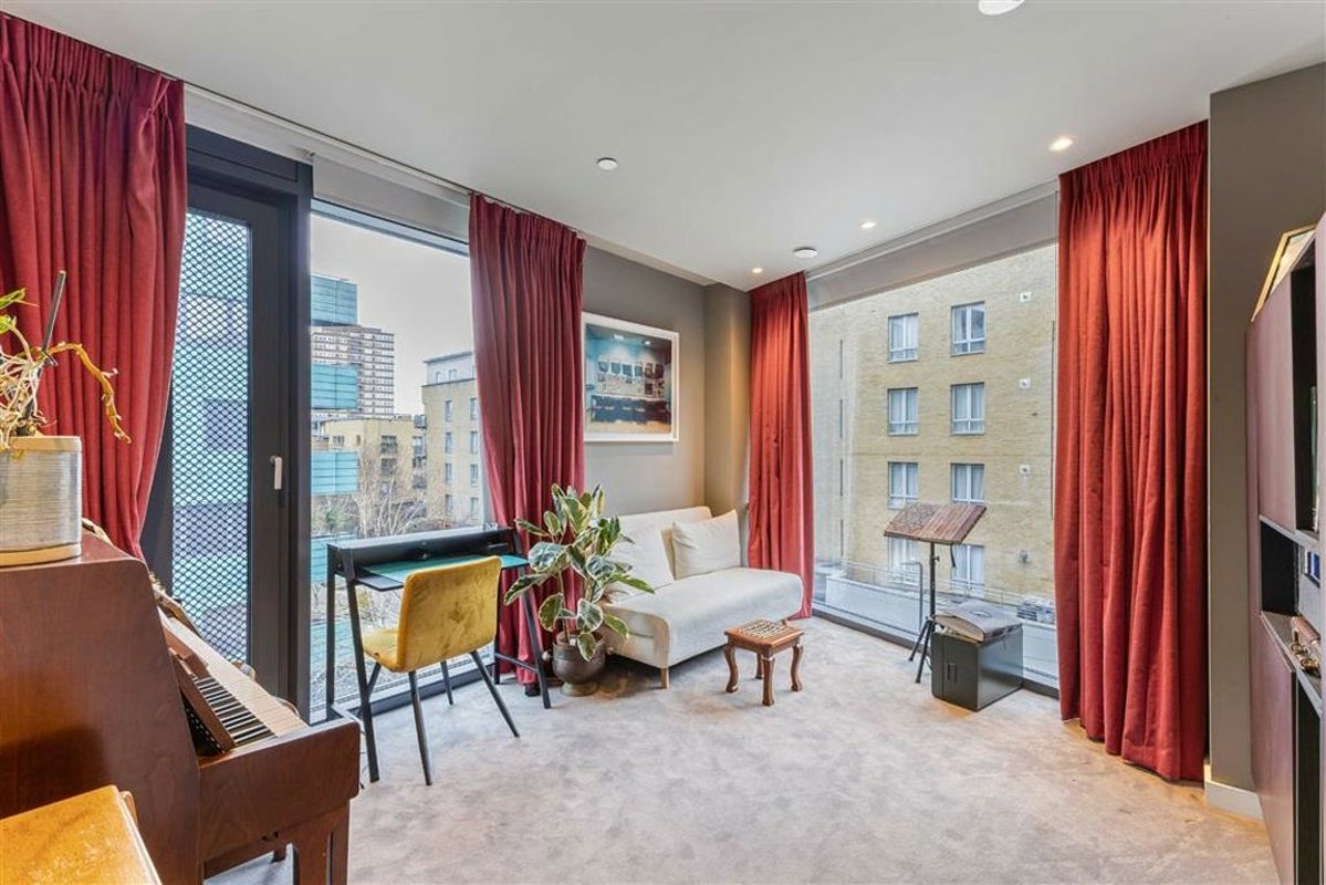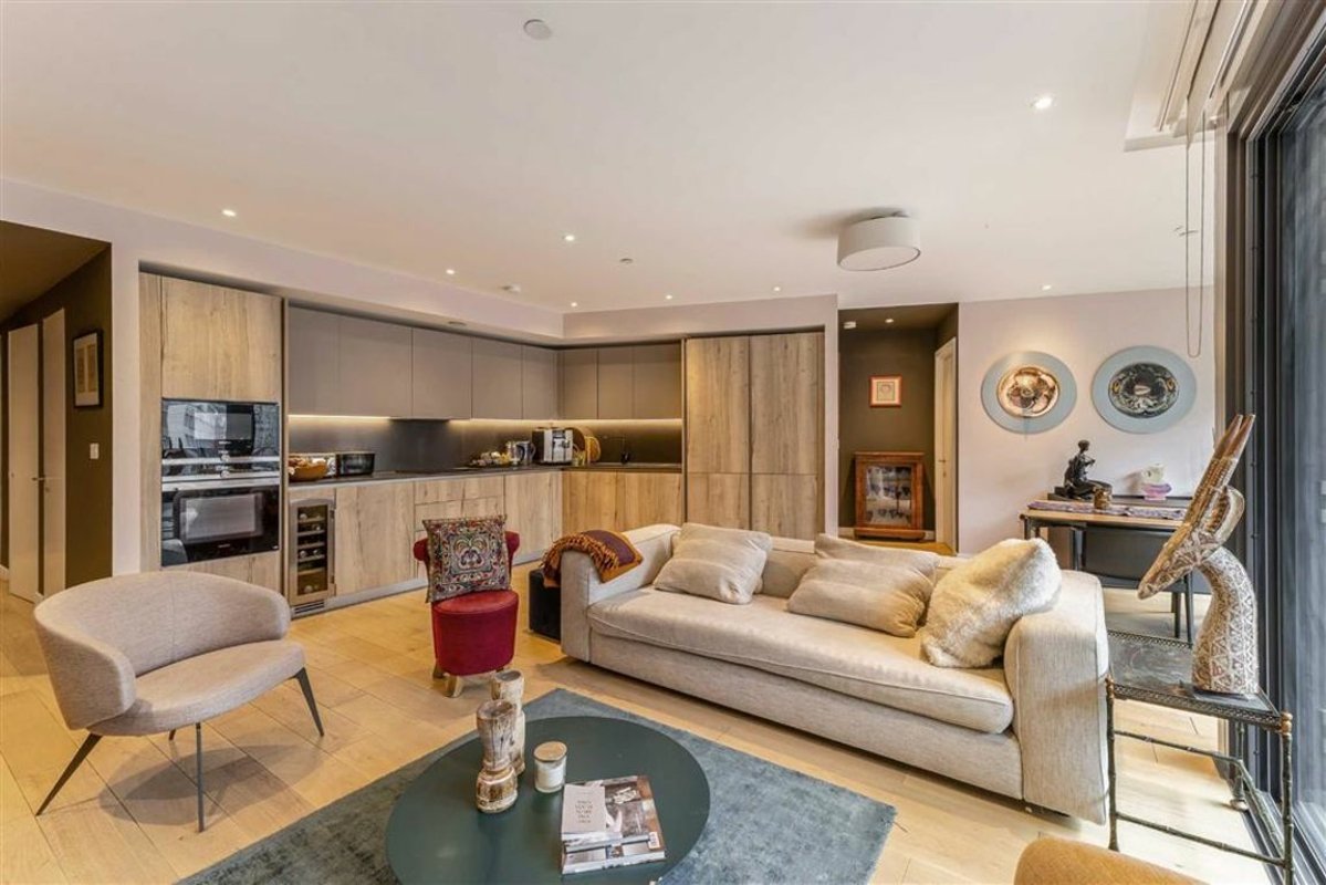 This impressive three-bedroom apartment, formerly the development's flagship show home, offers three bedrooms, including a principal suite fitted with wardrobes and an en-suite bathroom with a walk-in shower. The two additional double bedrooms are bright and spacious, the second with ample storage. A contemporary family bathroom sits between these rooms. The large open plan kitchen/living room leads onto the private South Facing Balcony. Residents benefit from large floor-to-ceiling windows, a 24hr concierge, cinema room, gym, treatment room, two terraces and secure bicycle storage.