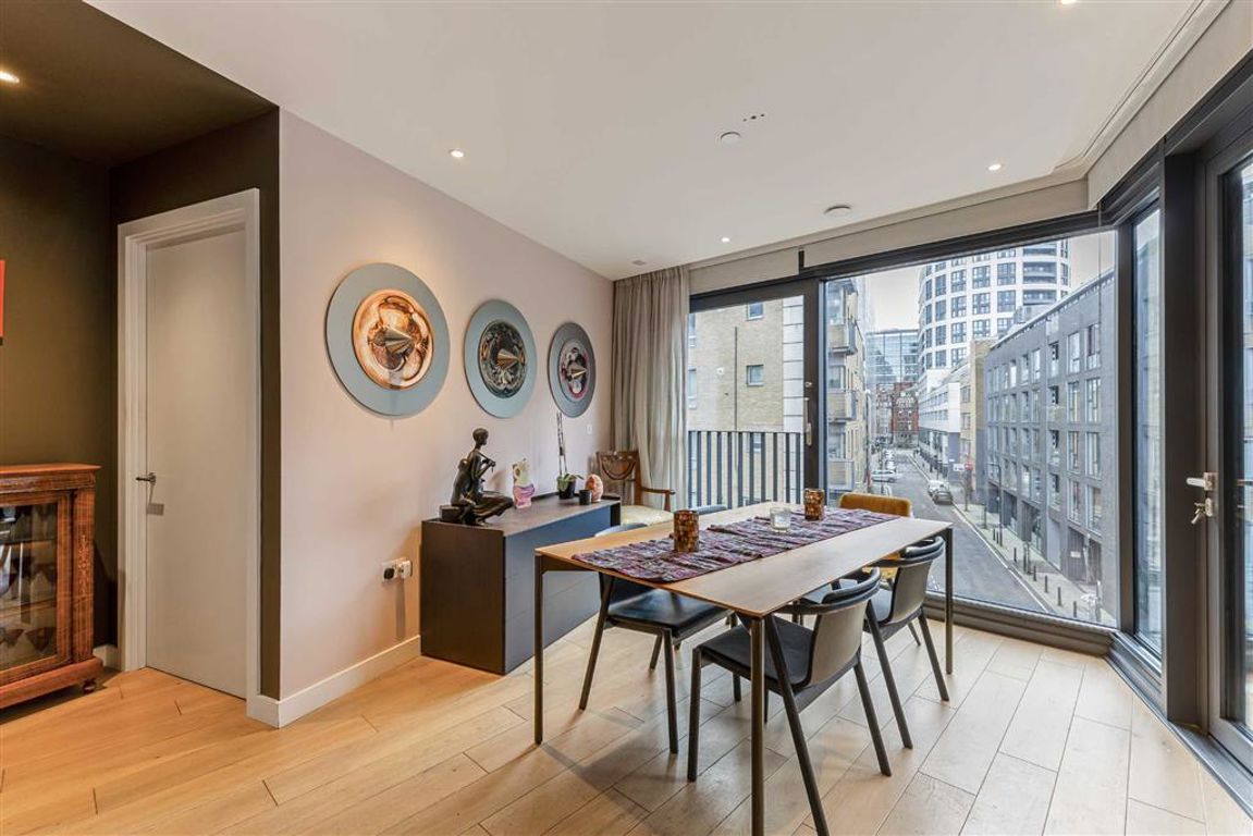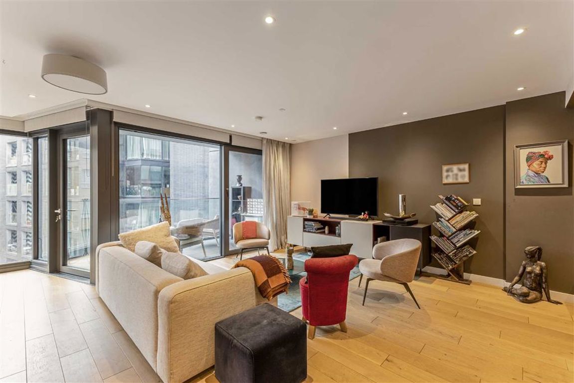 This impressive three-bedroom apartment, formerly the development's flagship show home, offers three bedrooms, including a principal suite fitted with wardrobes and an en-suite bathroom with a walk-in shower. The two additional double bedrooms are bright and spacious, the second with ample storage. A contemporary family bathroom sits between these rooms. The large open plan kitchen/living room leads onto the private South Facing Balcony. Residents benefit from large floor-to-ceiling windows, a 2...