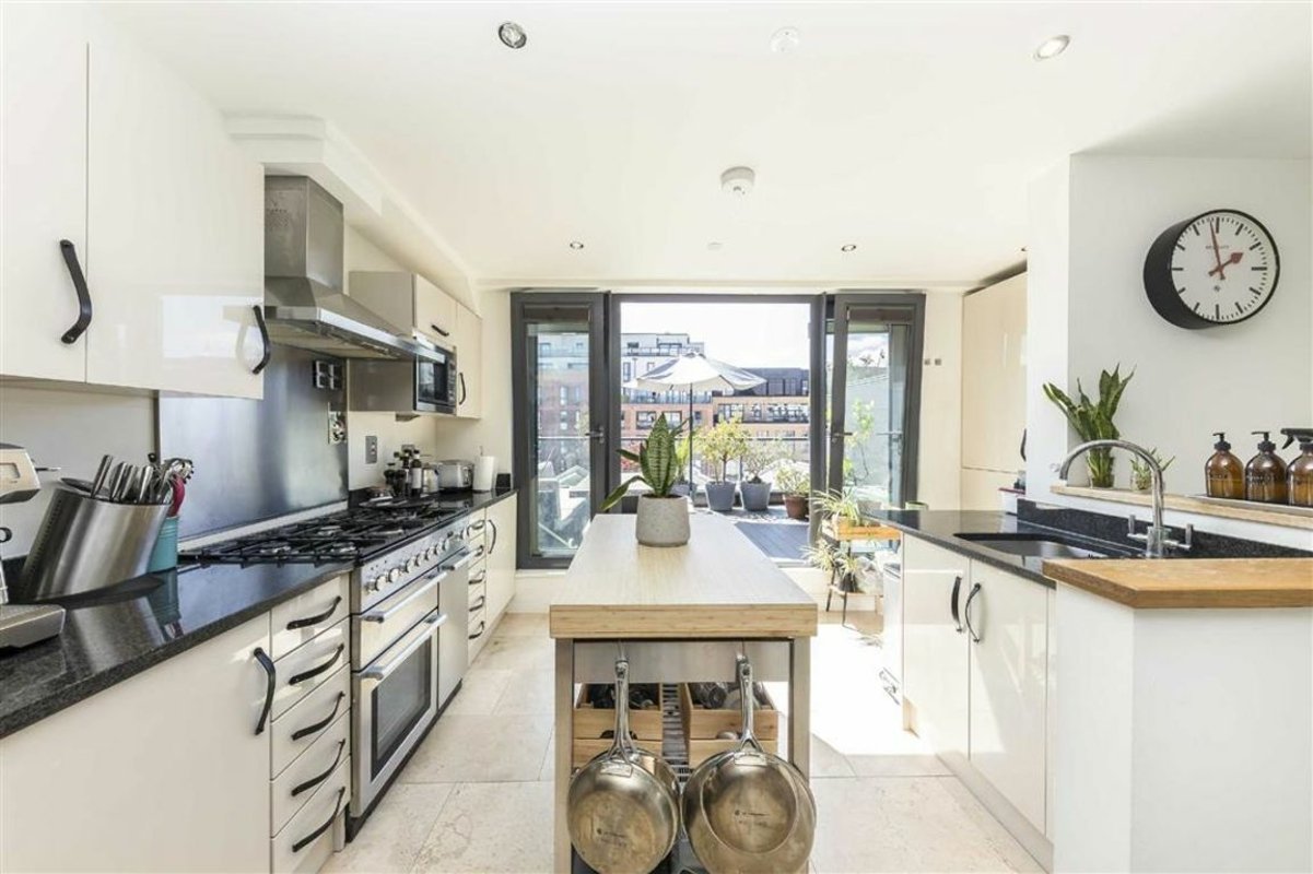 A highly attractive duplex apartment with a spacious open plan living room, which occupies the whole of the upper floor and leads out onto a large, private south west-facing terrace, two generous double bedrooms, a large family bathroom and an additional balcony.