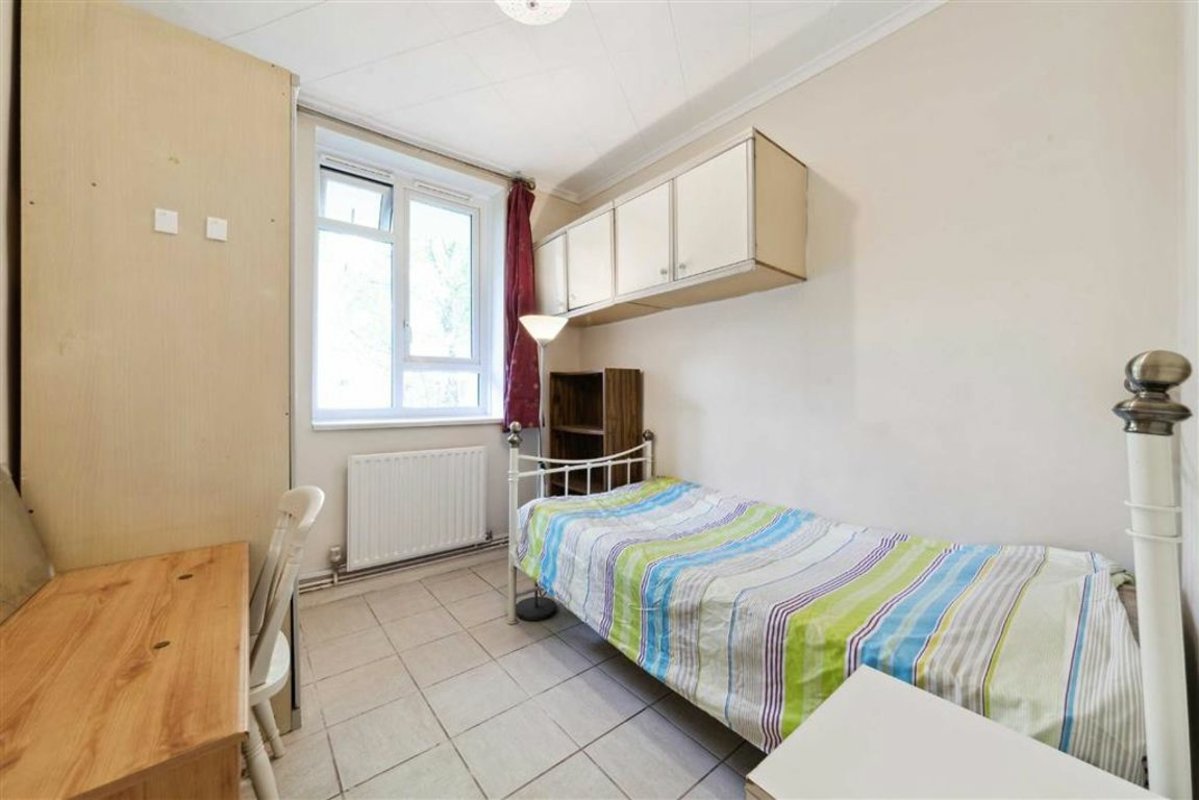 A very spacious 837 sq ft, west-facing flat, with three double bedrooms, a spacious living room, leading out onto a private balcony and overlooking the communal gardens, a large kitchen-diner, family bathroom and WC.