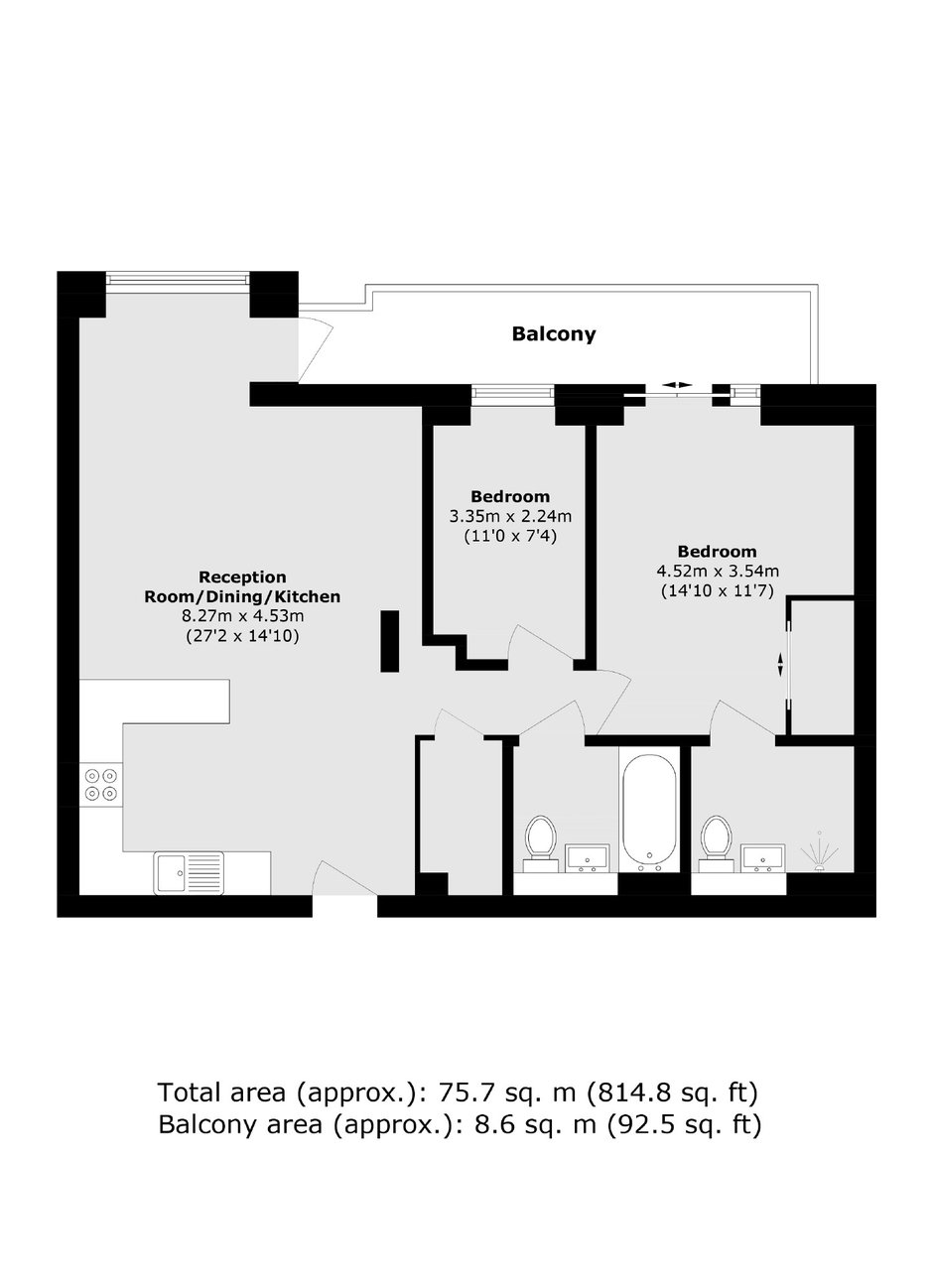 A highly attractive south-facing apartment on the 4th floor, with an attractive southerly aspect, an open plan living room and kitchen, a large south-facing balcony, two double bedrooms, two bathrooms and ample built-in storage.