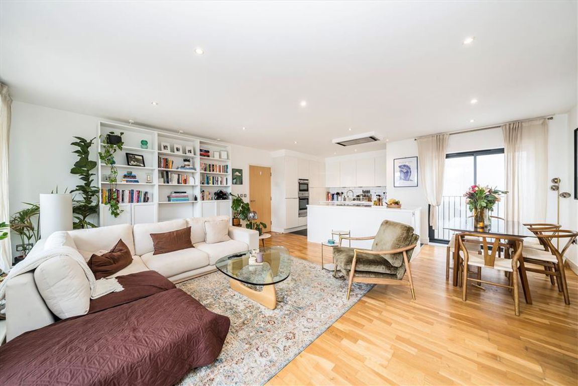 A very rarely available south-facing Penthouse Apartment with a very large private terrace, a spacious open plan living room and fully fitted kitchen, with ample room for dining and a separate seating area, two generous double bedrooms, two bathrooms and ample built-in storage. Sold chain free, with secure, allocated parking. Offers in excess of £1,000,000