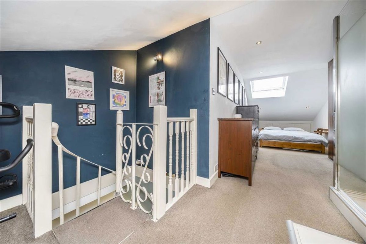 A two bedroom split level apartment set on the top floor. The apartment offers a large, open plan living room with ample space to dine and a modern kitchen with integrated appliances. The property also provides two bedrooms, both of which have in-built storage, the principle bedroom has large storage built into the eaves. The apartment includes two bathrooms one which is an en suite. In addition, the property benefits from a generous amount of natural light made possible by the large south facing windows. The apartment includes an off-street gated parking space.