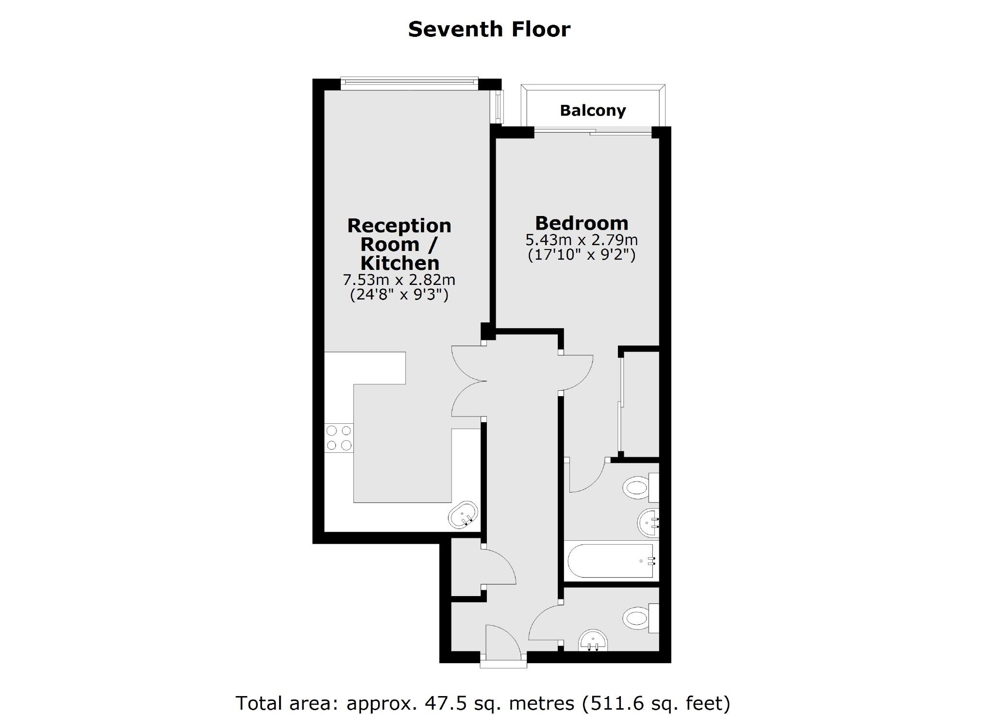 A recently refurbished one bedroom apartment on the seventh floor of this dockside development. This bright apartment has an open plan reception room, wooden flooring and a dock facing balcony.