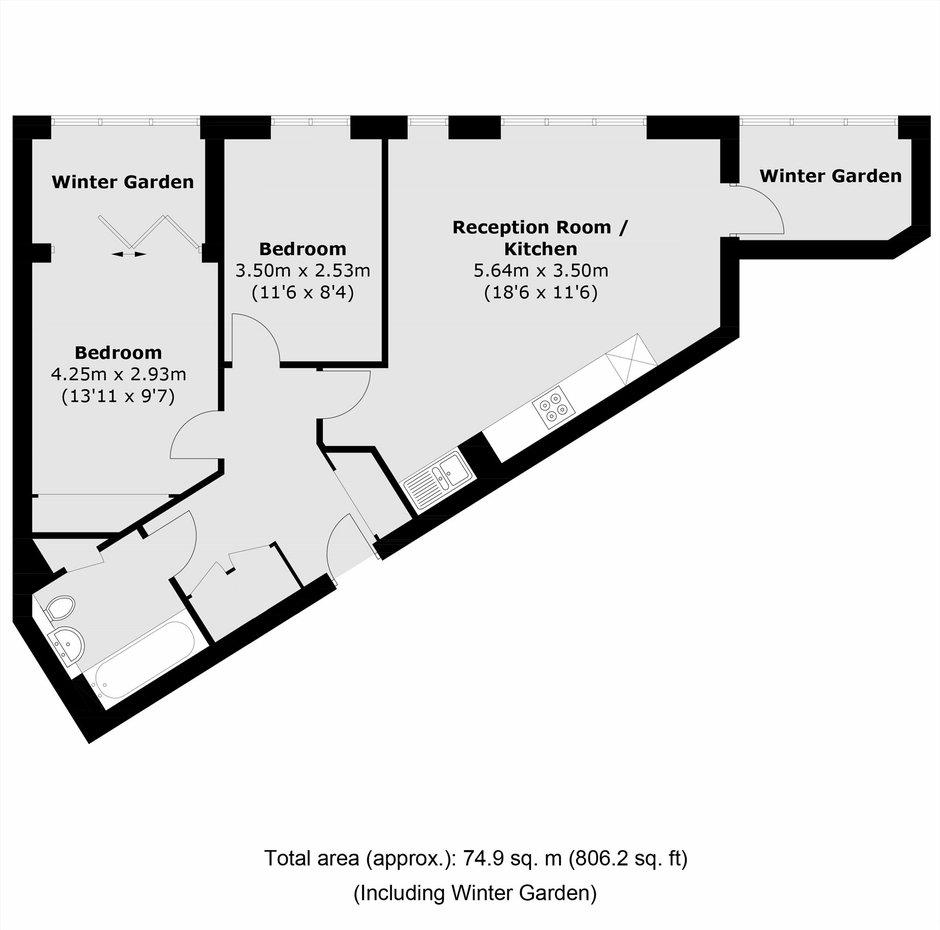 A well-presented two-bedroom apartment located on the sixth floor of Wiverton Tower. The property features a spacious open plan living area with a modern kitchen, leading onto a practical winter garden. There are two generously sized double bedrooms, with the principal bedroom benefiting from access to a second winter garden. Further features include floor-to-ceiling windows, underfloor heating, and a video entry system. Residents also enjoy access to a 24-hour concierge, gym, rooftop terrace and secure bicycle storage.