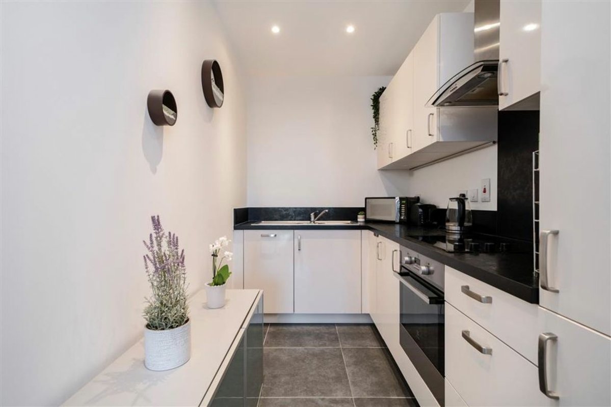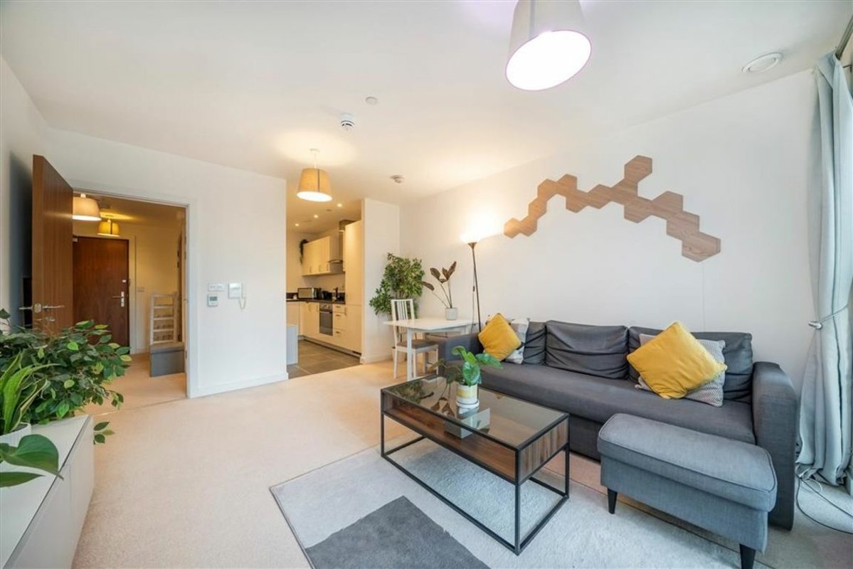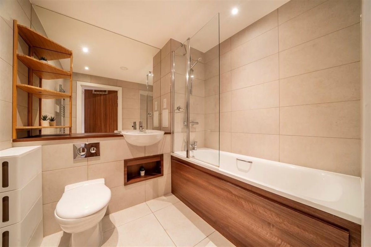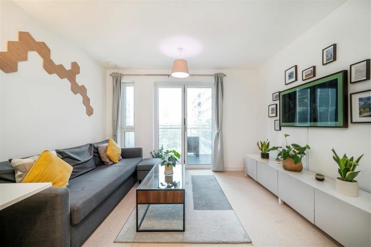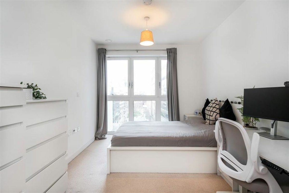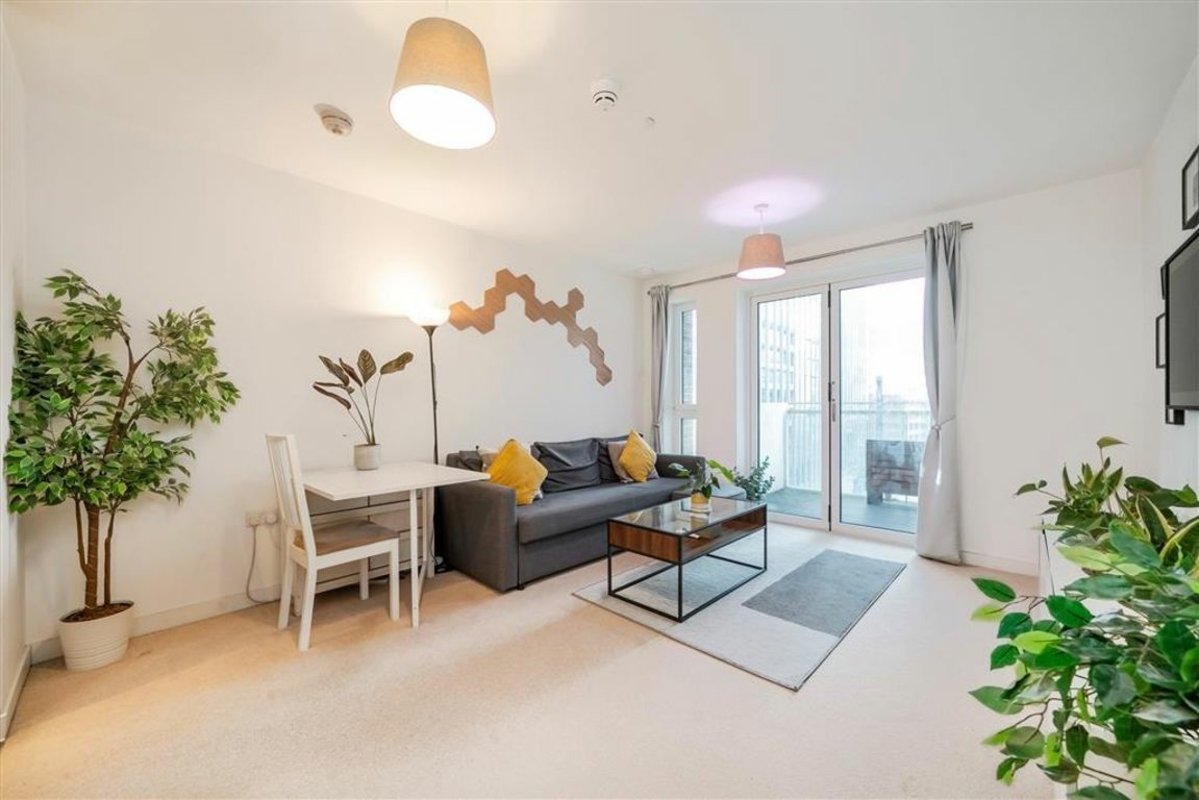 45% SHARED OWNERSHIP - A well-presented one-bedroom apartment located on the 5th floor of Wiverton Tower. The property features a spacious open plan living area with a modern kitchen, leading onto a private south/west facing balcony overlooking a stylish courtyard. There is a generously sized double bedroom with storage. Further features include floor-to-ceiling windows, underfloor heating, and a video entry system. Residents also enjoy access to a 24-hour concierge, gym, rooftop terrace and secure bicycle storage.