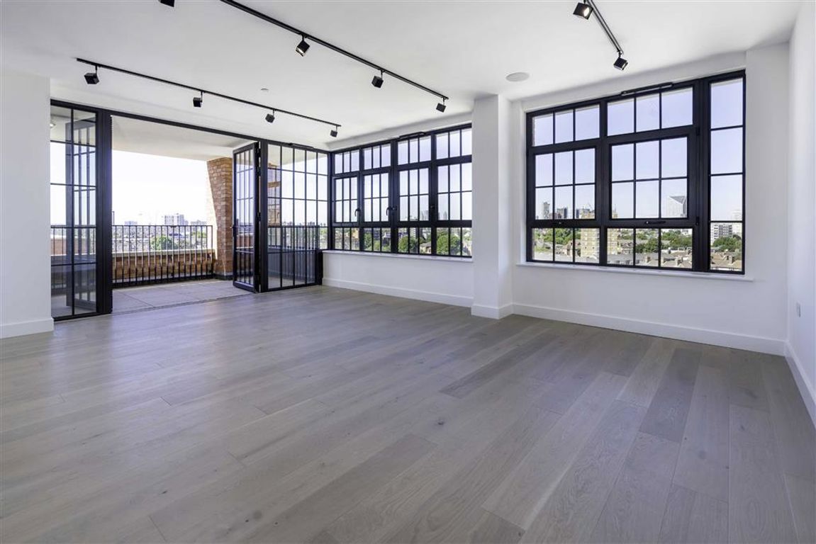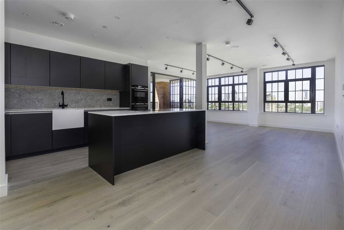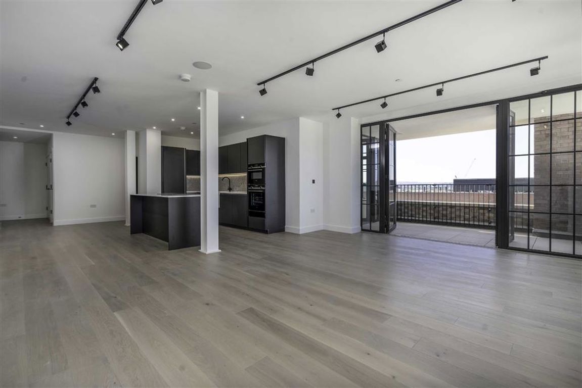 A rarely available Penthouse Apartment, finished to a very high specification, with fantastic skyline views, a very large open plan living room and kitchen, a generous south facing terrace, three double bedrooms and two bathrooms. Chain Free Sale.