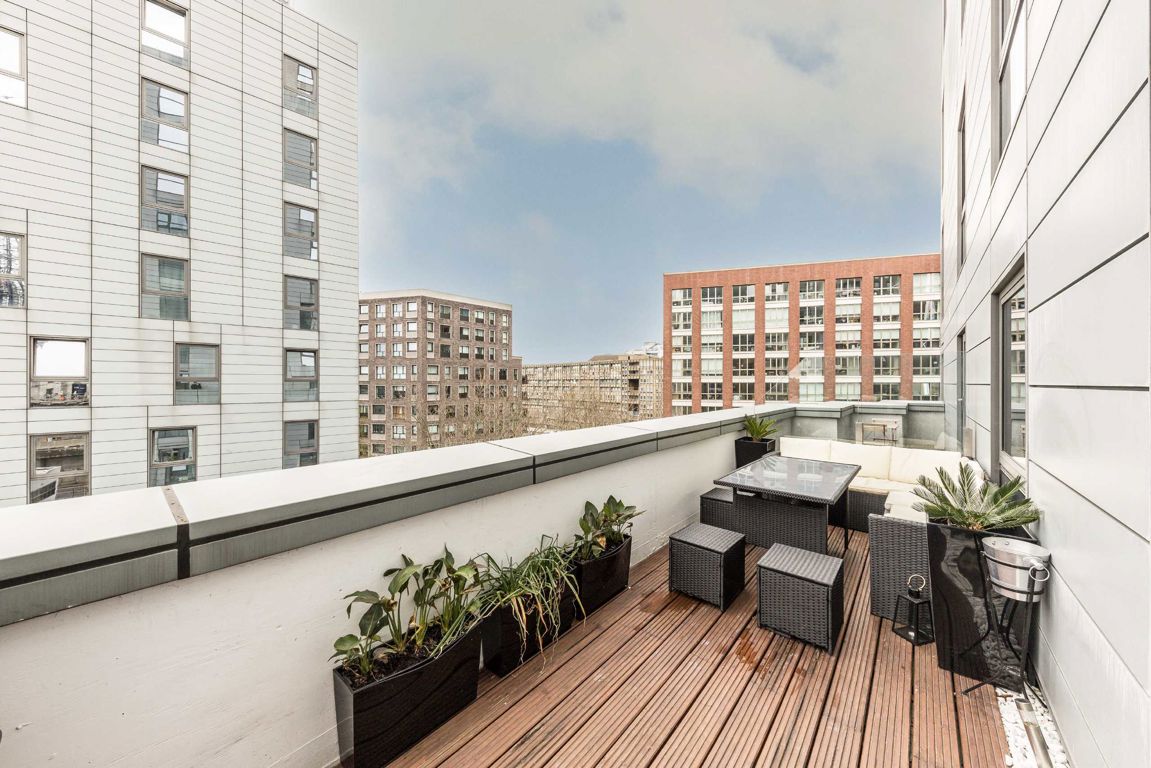 Offered to the market chain-free, this refurbished one-bedroom home benefits from a private terrace measuring 182 sq ft. The property further boasts a 24-hour concierge service, a residents' roof terrace, and a 900-year lease.